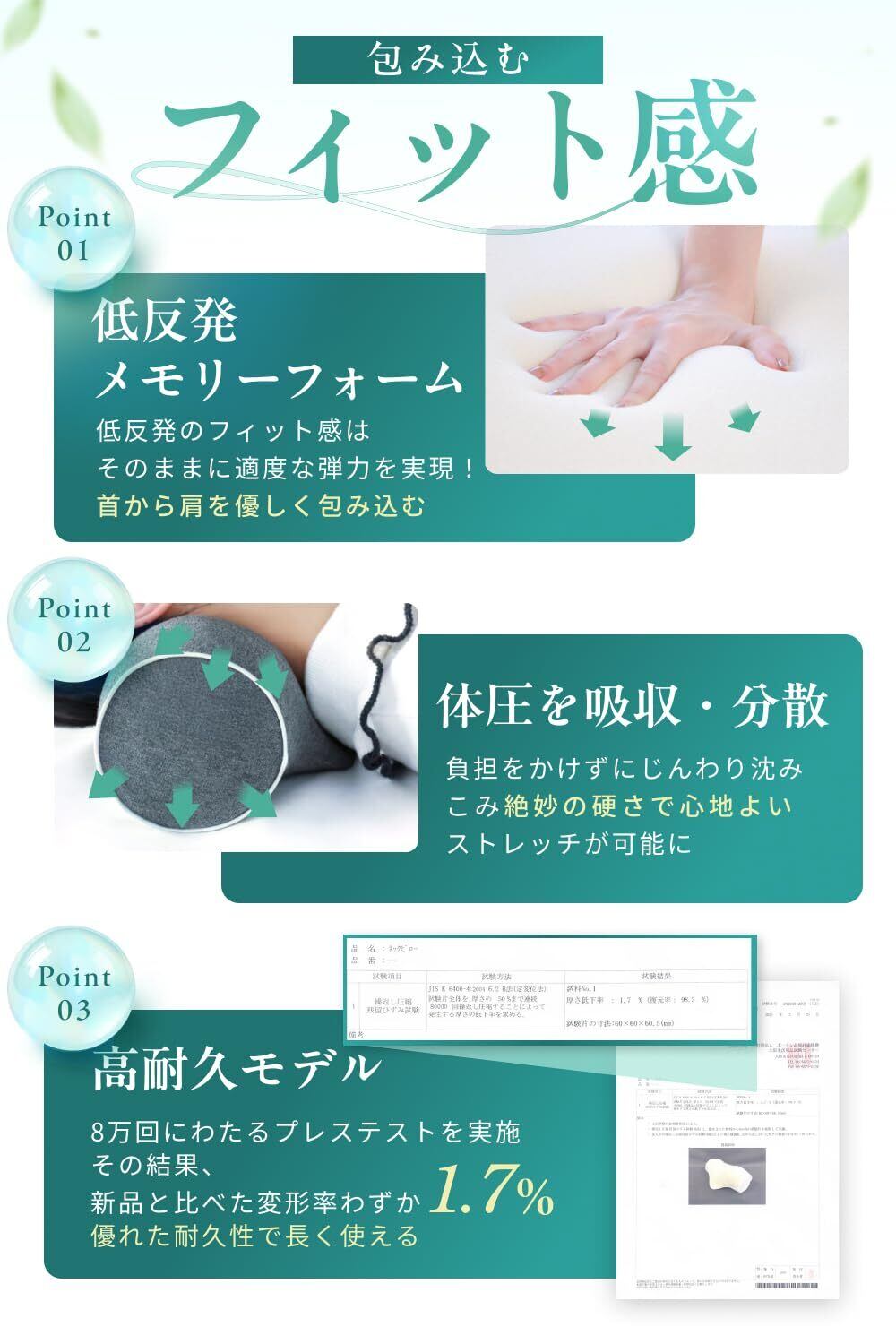 特徴 取り外し可能なカバー, 通気性, 首枕