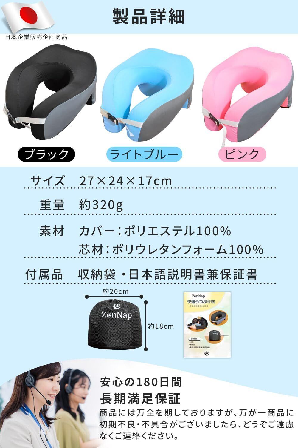 【現役医師監修】 昼寝 枕 うつ伏せ 仮眠 快適 まくら デスク オフィス リラックス 低反発 ネック ピロー 腕が痺れない 収納袋 付き ZenNap (ブラック)