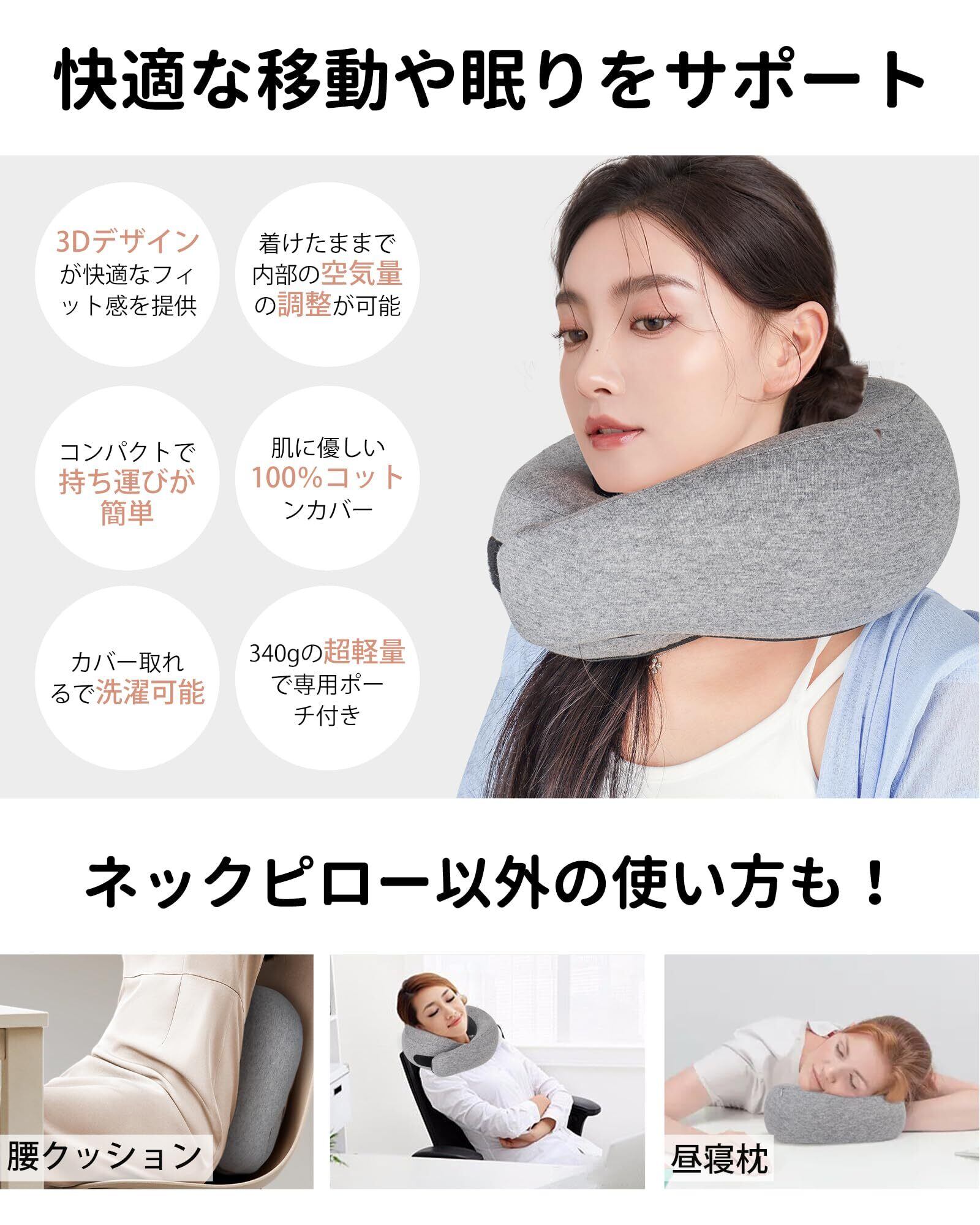 Dnzzs ネックピロー 低反発 首枕 飛行機 U型 携帯枕 コンパクト 枕 カバー洗濯可 持ち運び便利 エアー枕 旅行 便利グッズ 車 夜行深夜バス 新幹線 ソファ 椅子 旅行 お昼寝 仮眠 防災用 グレー