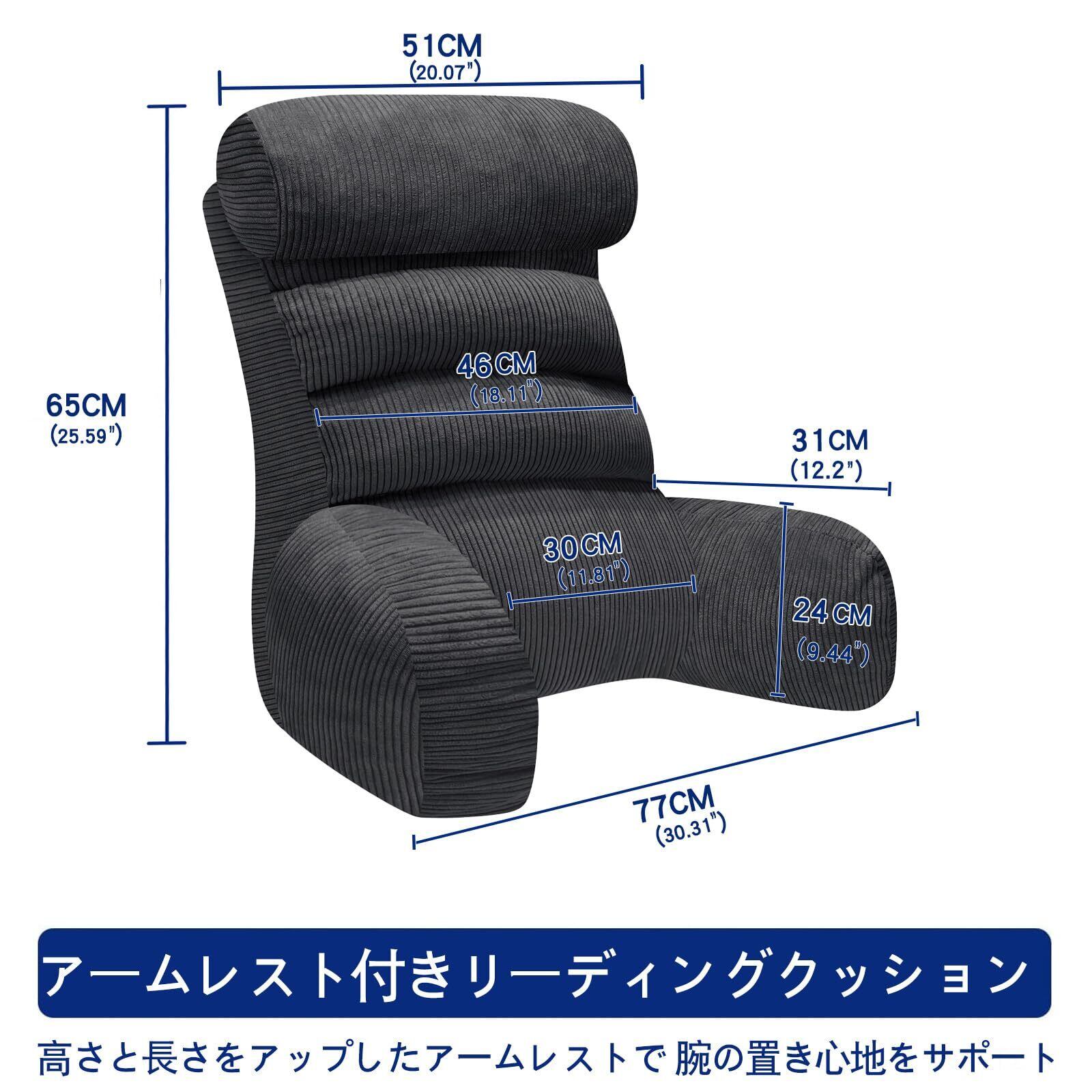 背もたれ クッション,アームレスト付き読書枕 大人向けサポートピロー,ベッド&ソファ用 テレビ枕・ゲームやリラックスに最適なリーディングクッション(チャコール,65*30cm)