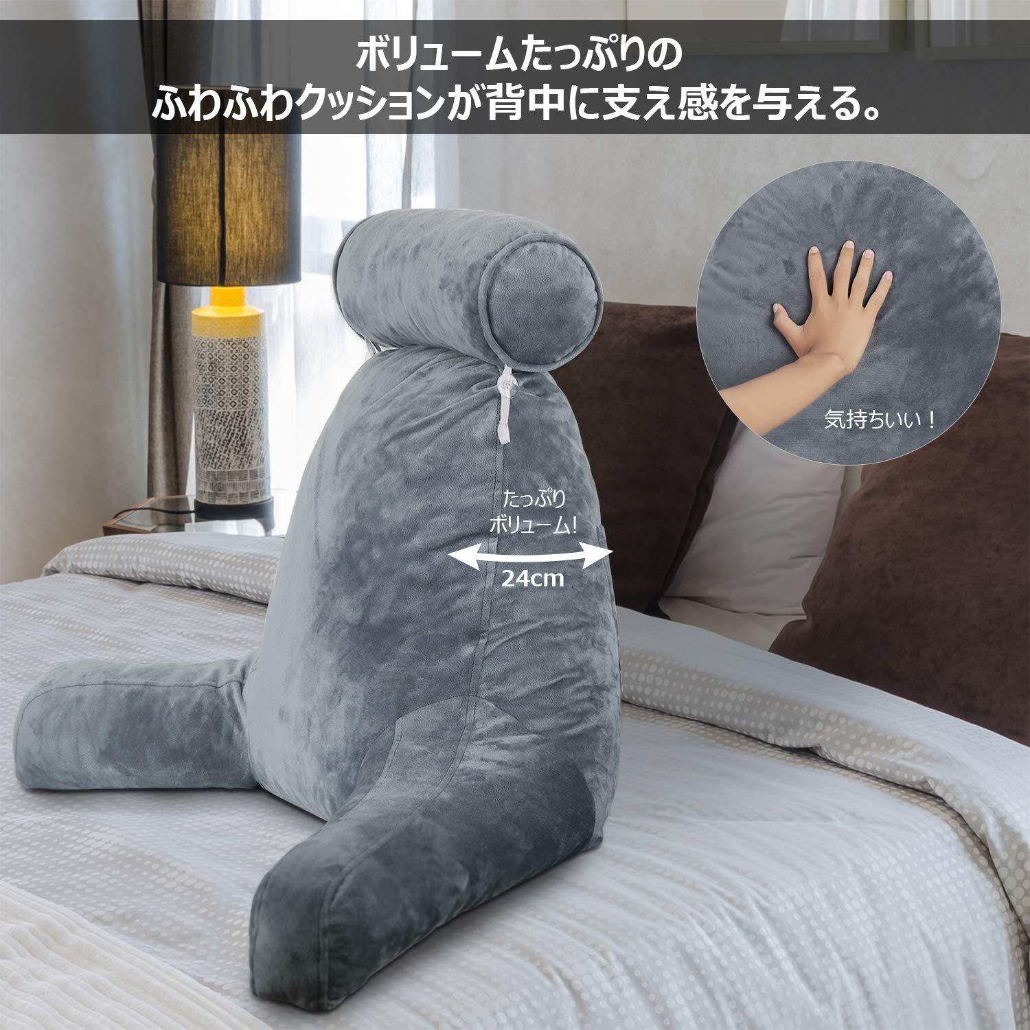 【製品仕様】①重さ:約3.6kg ②届く時の状態は真空処理で平べったく、2~3日間置くと自ら膨らんでゆく ③ポケット二つ付き(アームと背面)、本/雑誌/スマホ/タブレット/イヤホン/充電ケーブルなどの収納も役立ちます。 ④持ち運びに便利になるハンドル付き ⑤少し硬めですから、支え感を望んでるお客様におススメします。