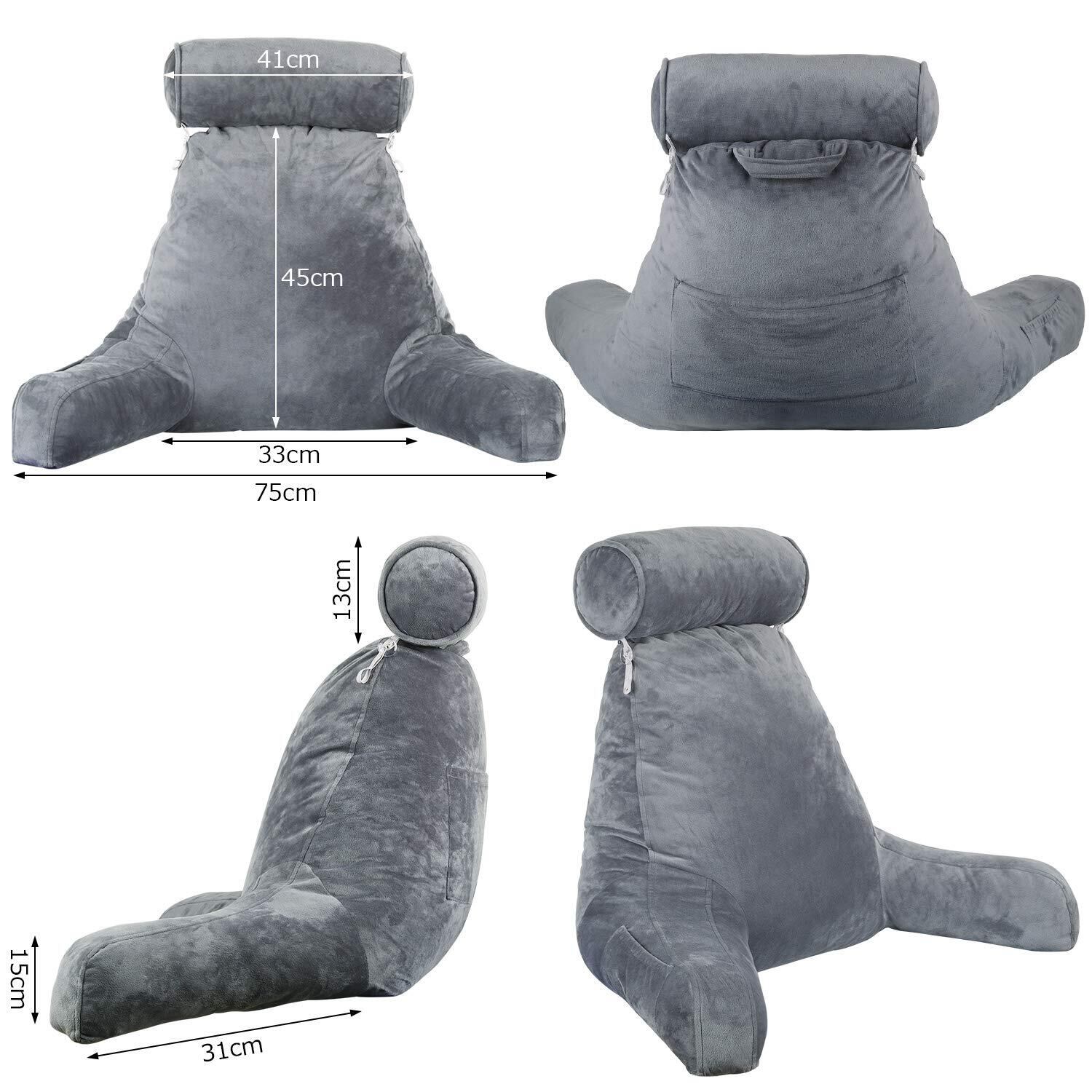 NEARPOW 背もたれ クッション 枕付き 低反発 レストクッション 座椅子 腰楽クッション ソファクッション 三段階調整 ベッド用 自宅用 ポケット付き 枕・カバー取り外しができ 洗える 持ち運び便利 アームサポート プレゼント ギフト (グレー)