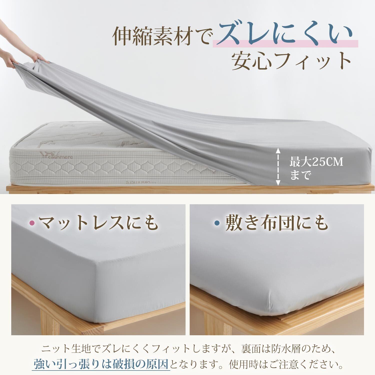 「軽量&速乾でお手入れ簡単」軽くて扱いやすく、洗濯後も一般的な防水シーツに比べて速乾性に優れ、常に清潔に使えます。さらに全周ゴム仕様で取り付け・取り外しも簡単。厚さ25cmまでのマットレスや敷き布団に対応し、日常使いに便利です。