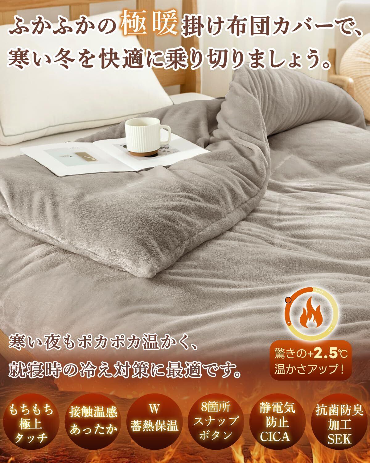 掛け布団カバー シングル 冬 あったか フランネル 掛けふとんカバー 極細マイクロファイバー 布団カバー 毛布カバー 吸湿発熱 ふわふわ 蓄熱保温 接触温感 毛布にもなる 抗菌防臭 全開ファスナ 8ヶ所ボタン 簡単着脱 秋冬用 防寒対策 単品売り 洗える 静電気防止 Housecover(シングル・150×210cm グレージュ)