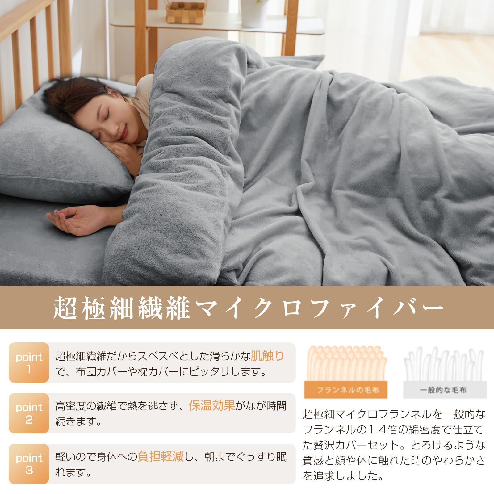 Housecover 寝具カバーセット フランネル生地 布団カバー 掛け布団カバー ファスナー仕様 ボックスシーツ 全周ゴム付き 枕カバー 合わせ式 ベッドシーツ 敷き布団カバー 洋式・和式兼用 洗い替え用 あったか マイクロファイバー 洗える 発熱 保温 静電気防止 丸洗いOK 冬 グレー シングル