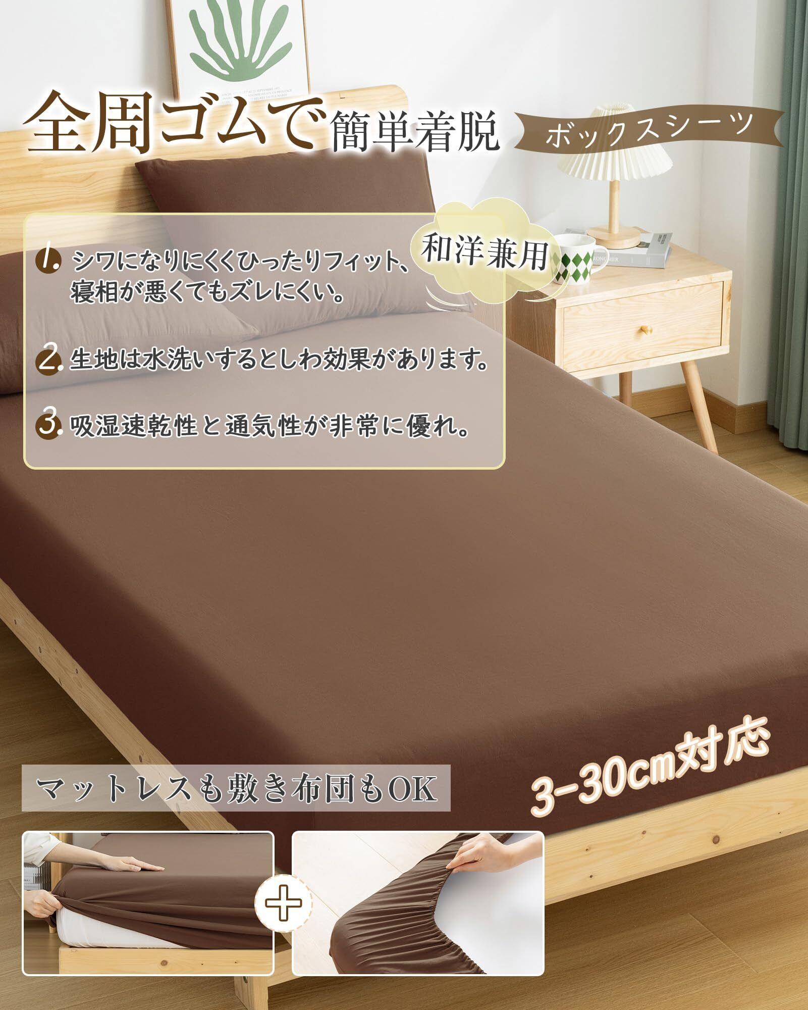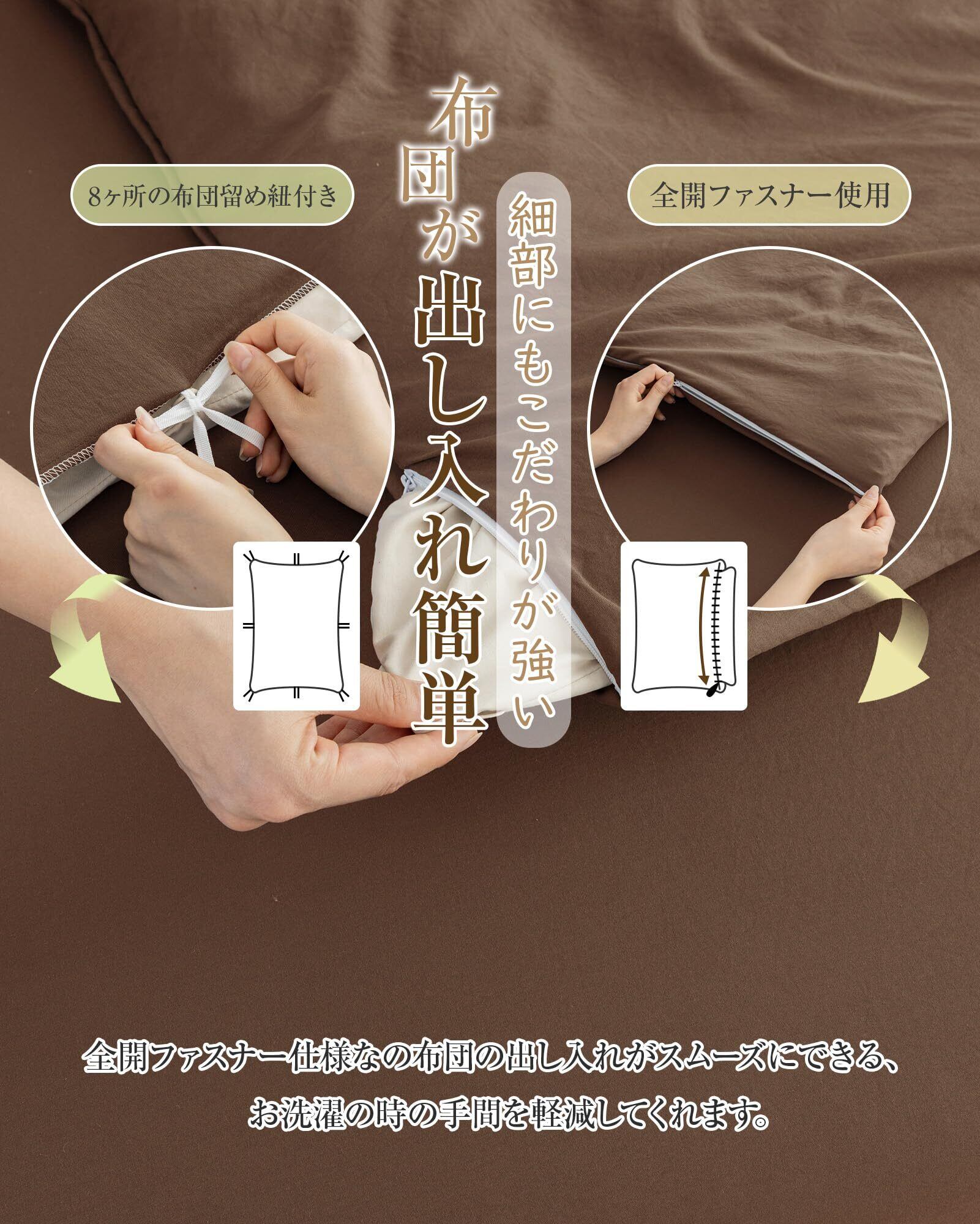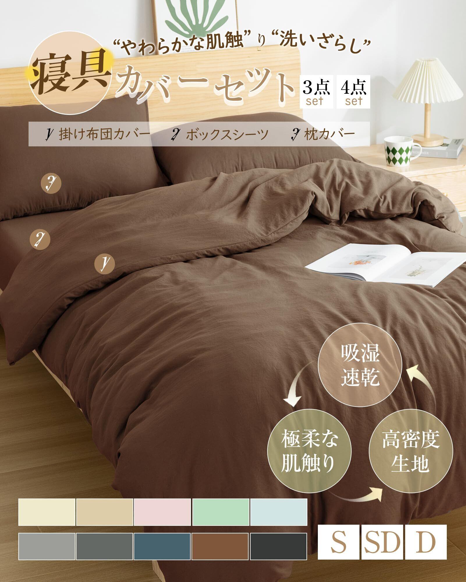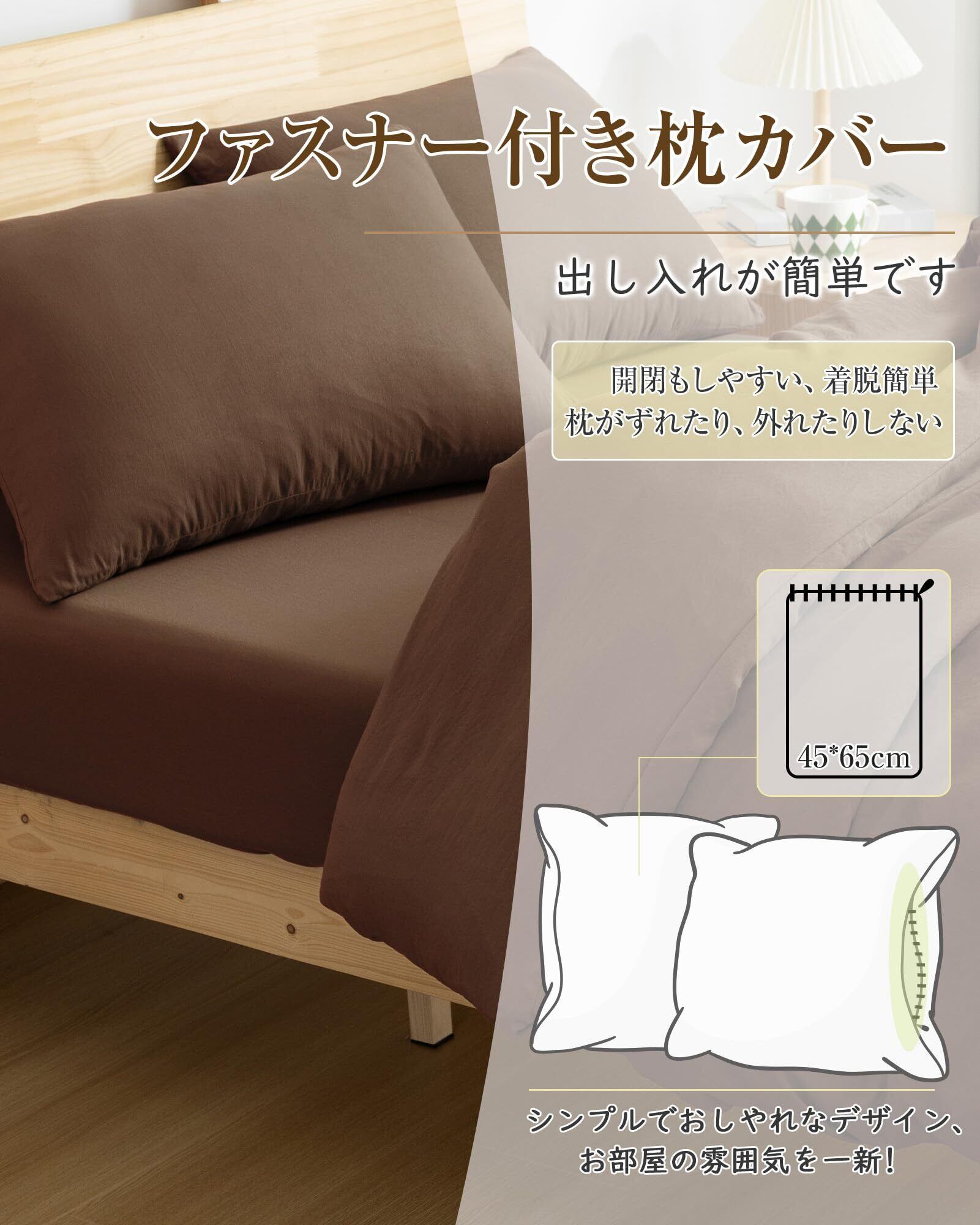 Housecover 布団カバー シングル 3点セット 寝具カバーセット【水洗い加工&超柔らかい】掛け布団カバー 洋式ベッド・和式布団兼用 ボックスシーツ 掛け布団カバー 3点セット 洗いざらしシワ加工 やわらか 肌触り 吸水速乾 丸洗い 無地 シンプル オールシーズン( シングル・3点セットブラウン)