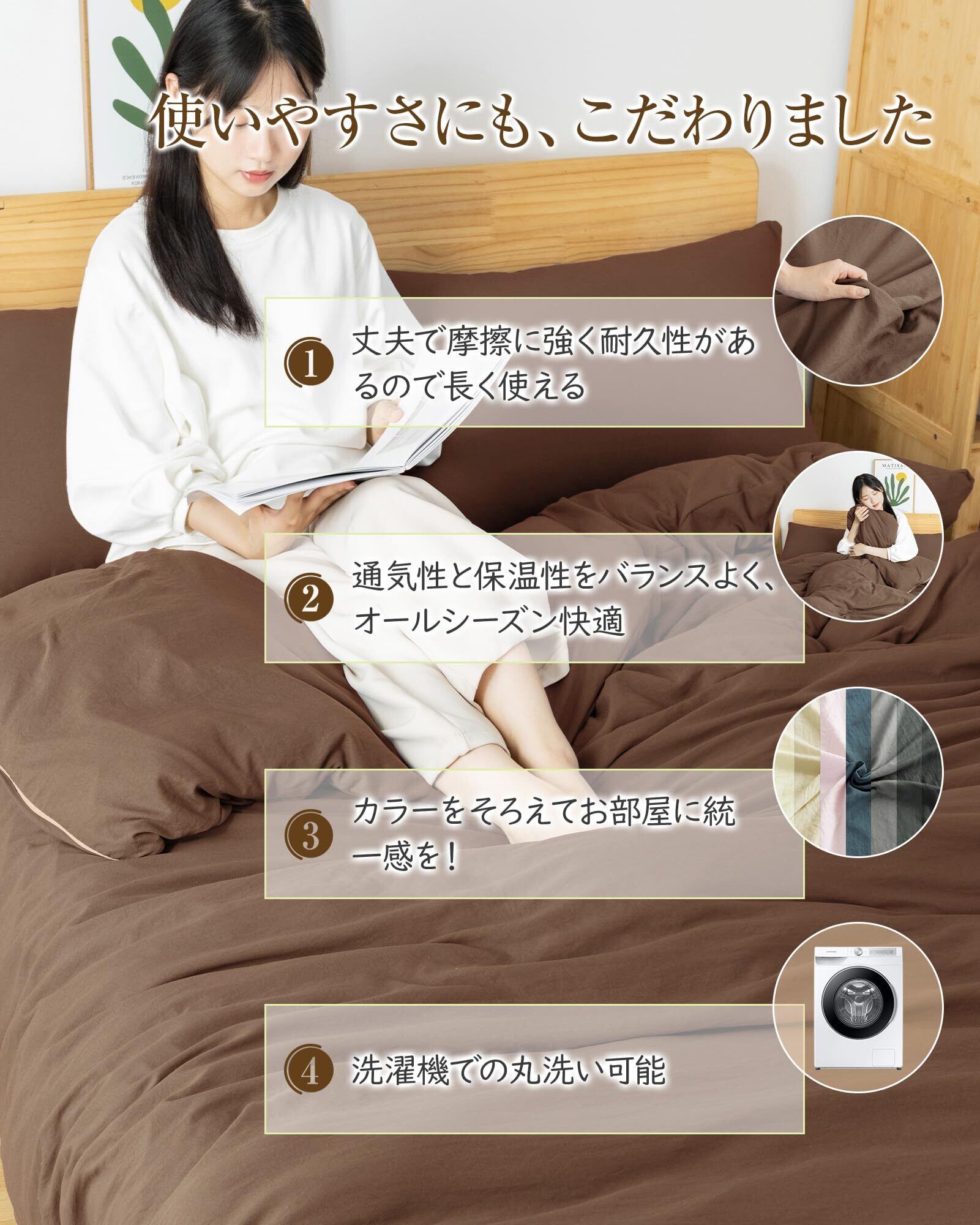 \【◆Housecover 布団カバー シングル 3点セット|快適な眠りを実現するシンプルブラウンカバー!】/