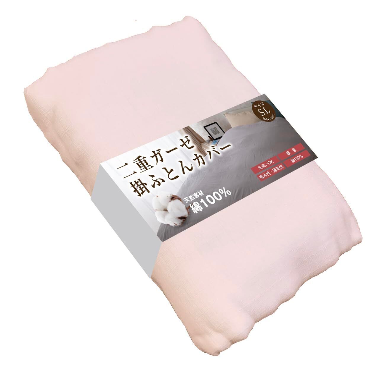 掛け布団カバー 2重ガーゼ 綿100% 寝具 羽毛布団カバー シングル 150x210 丸洗いOK オールシーズン 無地 コットン 肌ざわり 快適 ズレ防止ひも付 (ピンク)