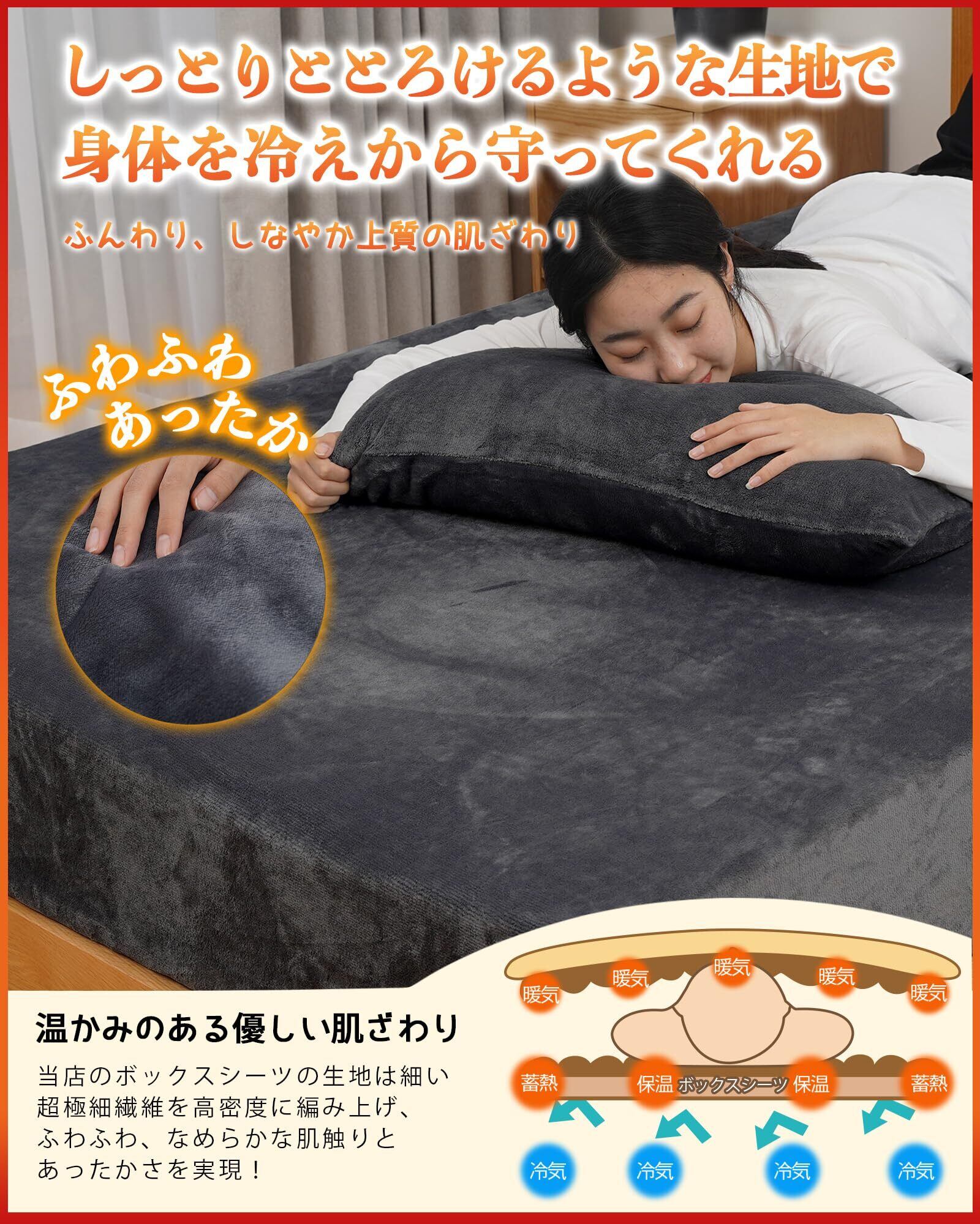 【暖かさが格段にアップ】暖かさが人気のマイクロファイバー繊維を採用しています。細かい繊維の隙間にたっぷり空気を含むので、身体の熱を保持することができます。蓄熱保温機能の生地は、人体が放出するエネルギーを吸収し、ベッドシーツの温度を上げ、熱を蓄えます。従来品のボックスシーツ生地よりも長い極細繊維パイルで、繊維と繊維の間に空気をため込み、体温を逃さず暖かさを保ちます。新機能の接触温感で、ベッドシーツに触れた際に、手の平で暖かく感じられます。このベッドカバーを敷くだけで、ふわふわで、ぬくぬく、朝から夜まで至福!通常の暖かいシーツに比べ、さらに高い保温力が期待できます。そんな毎日が待っています。