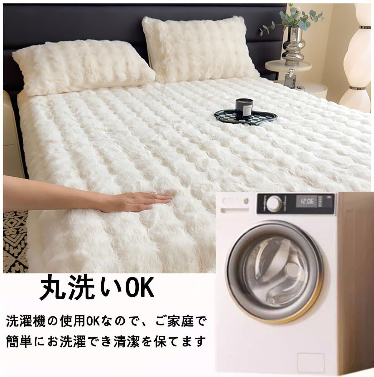 「ボックスシーツ 冬」は、柔らかくふわふわのラビットファー調素材を使用したマットレスカバーです。寒い夜も温かさをキープし、心地よい眠りをサポートします。全周ゴム付きなので、寝返りを打ってもズレにくく安心です!