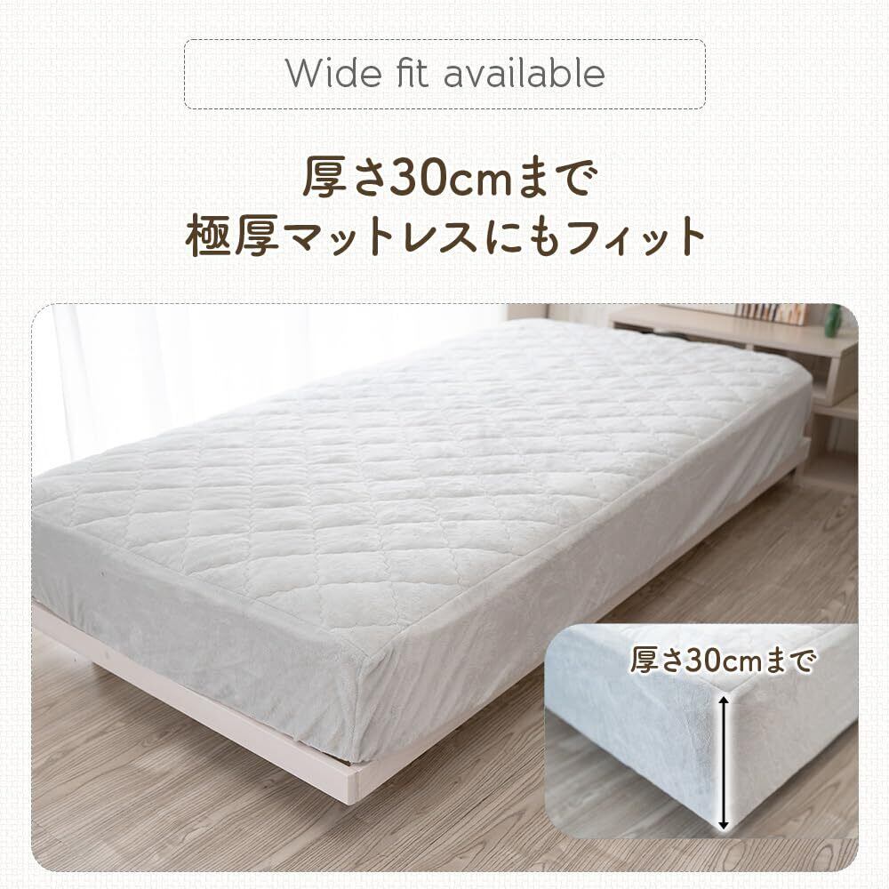 【ベッドパッド一体型で、毎日のベッドメイキングが驚くほど簡単に!】ベッドパッドとボックスシーツが一体になった便利なシーツです。これ1枚でベッドメイキングが完了するので、忙しい朝の手間が大幅に削減されます。洗濯も1枚で済むため、家事の負担を軽減します。全周ゴム仕様で取り付け・取り外しも簡単スムーズ。寝返りをうってもズレにくく、朝までしっかりフィットして快適な睡眠をサポートします。お手入れも簡単なので、いつでも清潔なベッドで気持ち良くお休みいただけます。