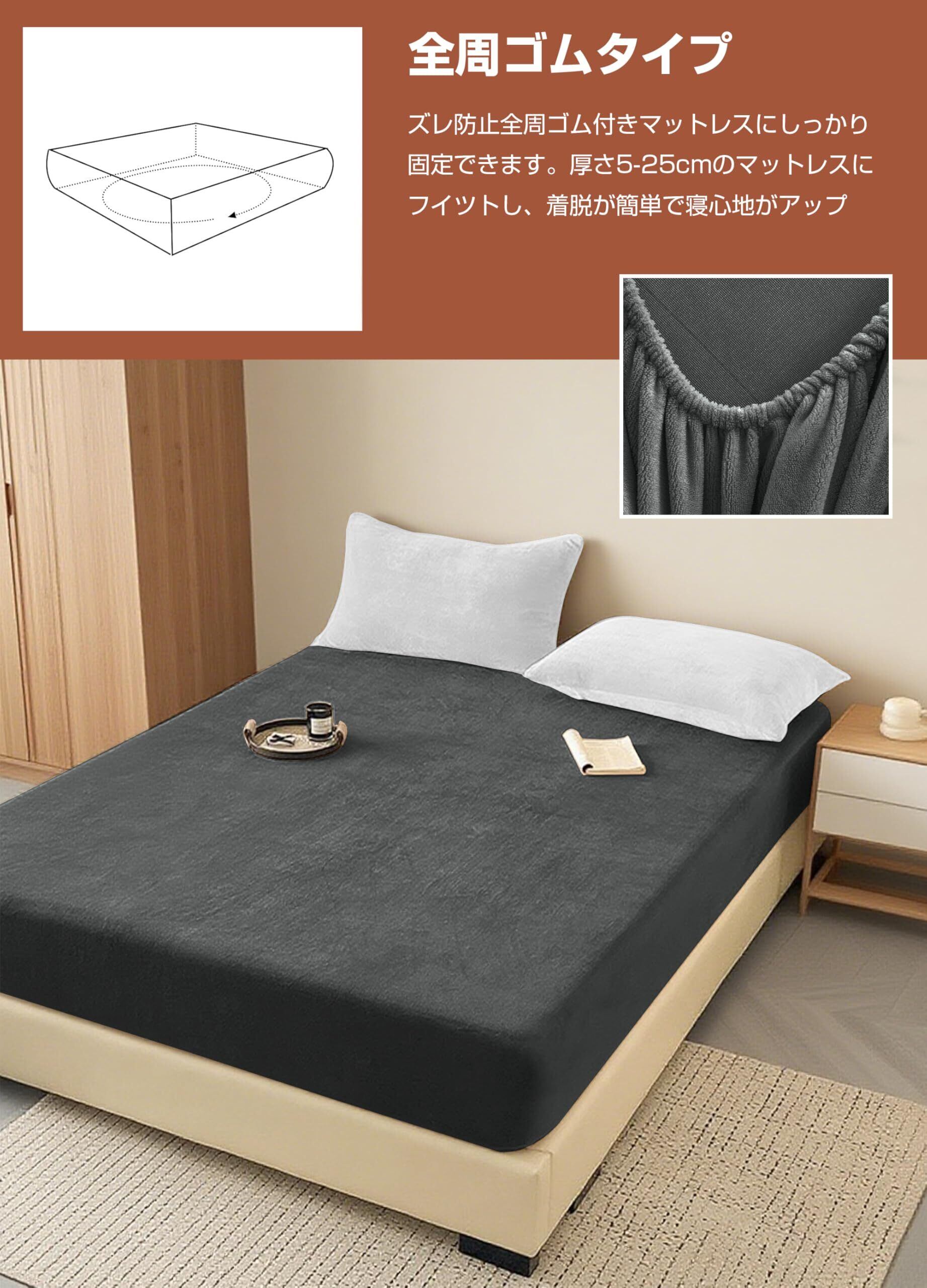 シーツは防寒性に優れ、寒い季節にぴったりです。寒さを苦手とする方でも安心してお使いいただけます。また、全周ゴム付きデザインにより、マットレスにしっかりフィットし、寝返りを打ってもズレる心配がありません。