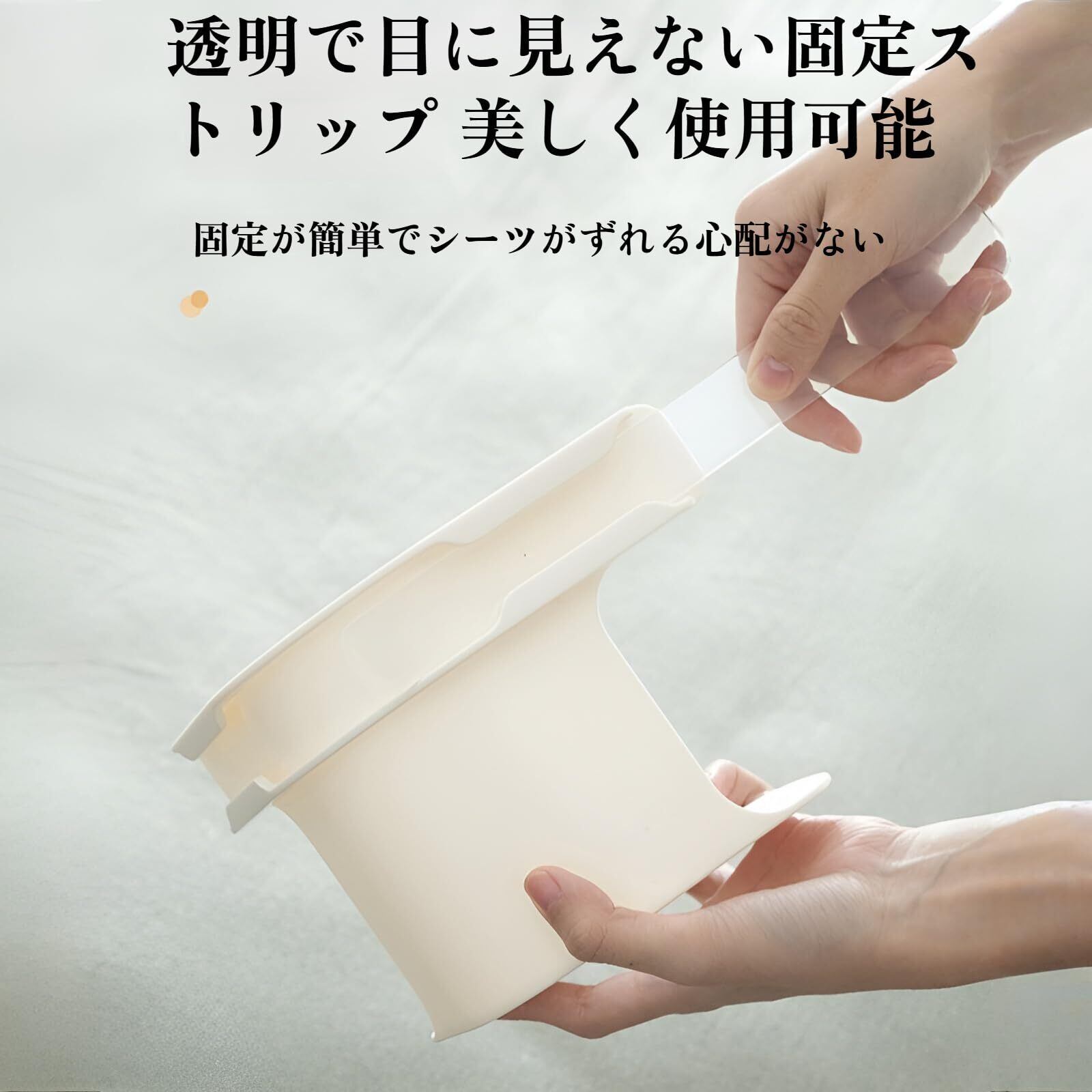 「[lalarimi]ベッドシーツクリップ」は、シーツや布団のズレをしっかりと防ぎます。特許取得のデザインにより、就寝中の安定した寝具環境を実現し、ぐっすり眠るためのサポートをします!