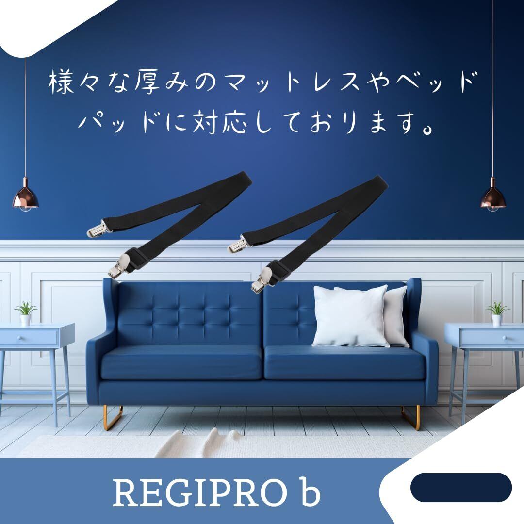 レジプロb ベッドシーツ固定クリップ 布団ズレ防止 ゴムバンド 50-180cm 調整可能 2本入り (ブラック)