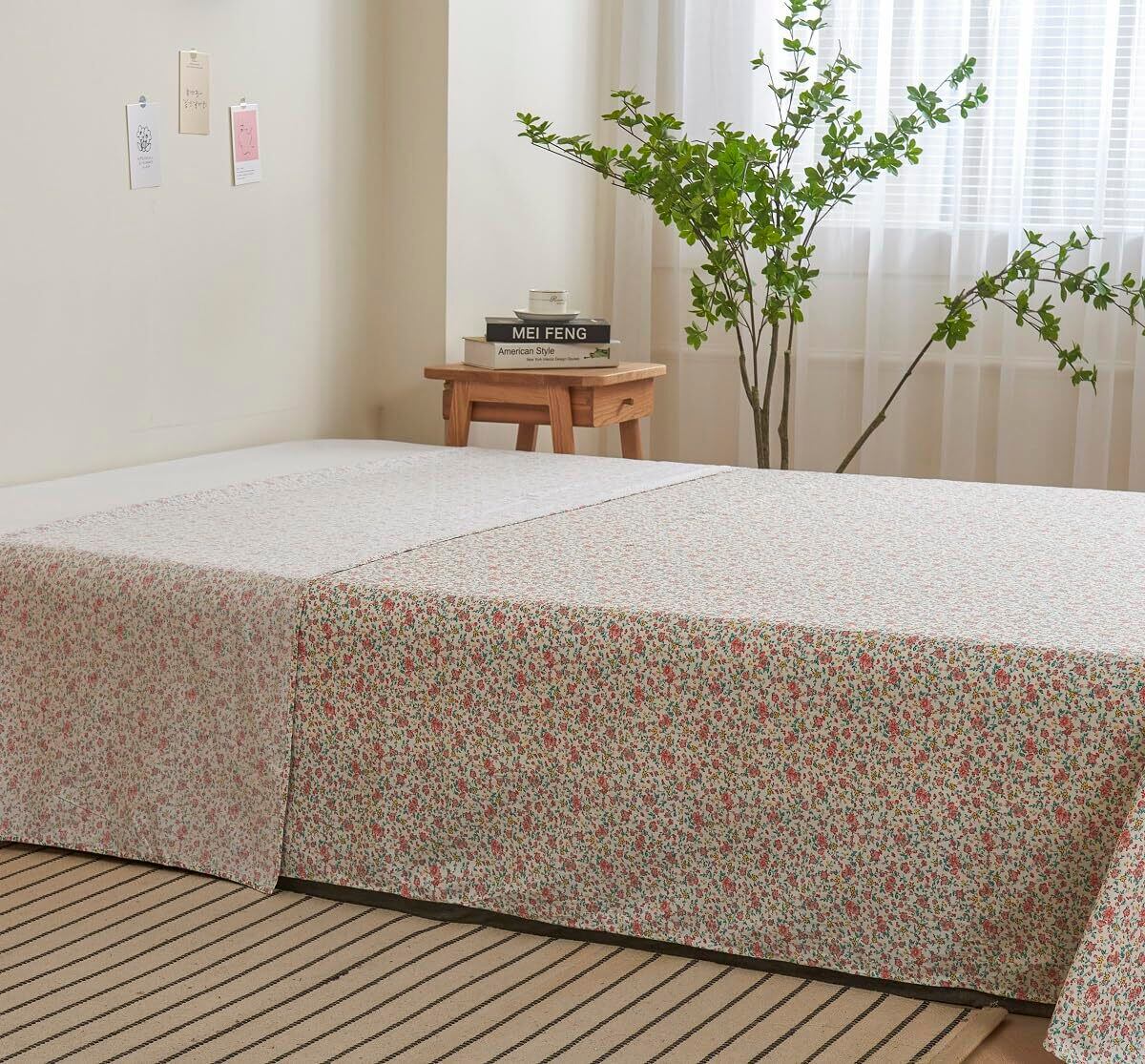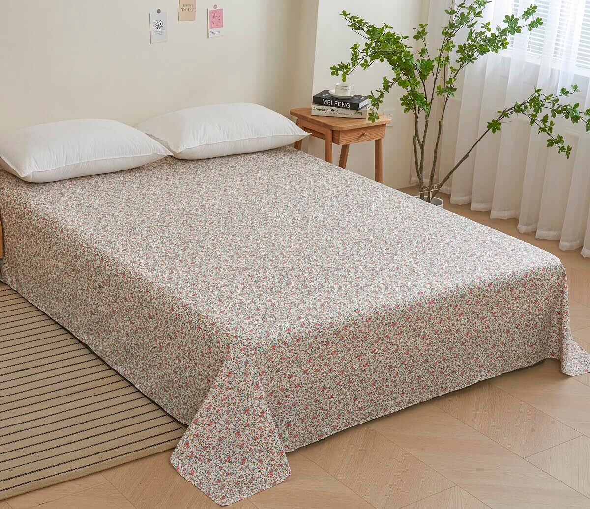 「フラットシーツ セミダブル」は、肌に優しいコットンを使用し、美しい花柄デザインが魅力的なアイテムです。防ダニ・抗菌機能を備えており、心地よい寝具環境を提供します!