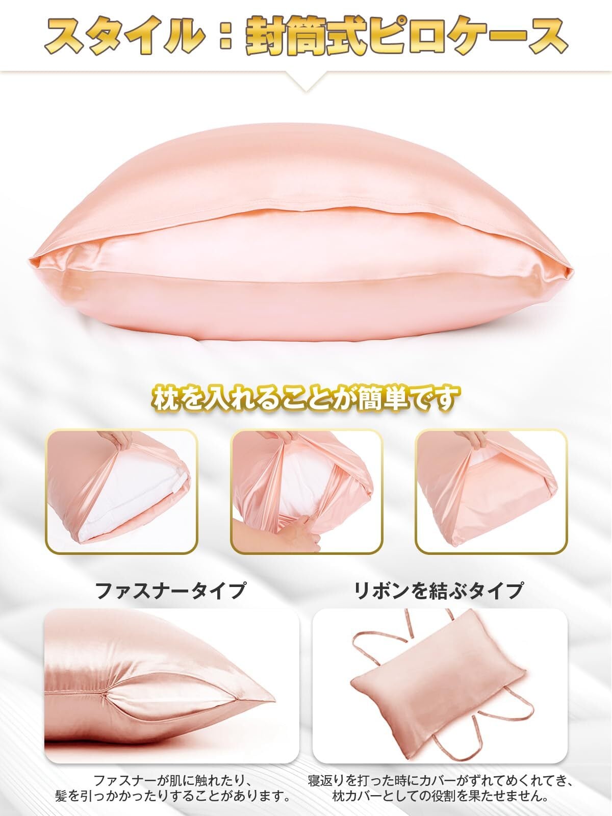 この枕カバーは両面シルクタイプで、シンプルで洗練された桜色が、どんな寝室とも調和します。封筒式デザインで枕をしっかりと包み込み、使いやすさも考えられています。