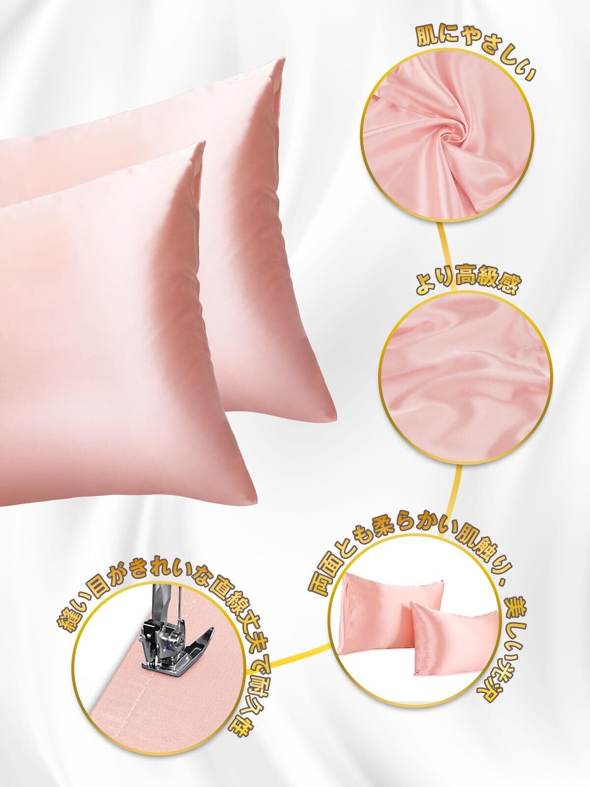 【シルキー枕カバー】ツルツルした肌触りが気持ちよく、縫製もしっかりしています。独特の艶やかな光沢感があり生地は厚めで柔らかです。髪にも肌の敏感なアレルギー体質にも良くアトピーの方にも適されるとのことなので健康的な素材です。