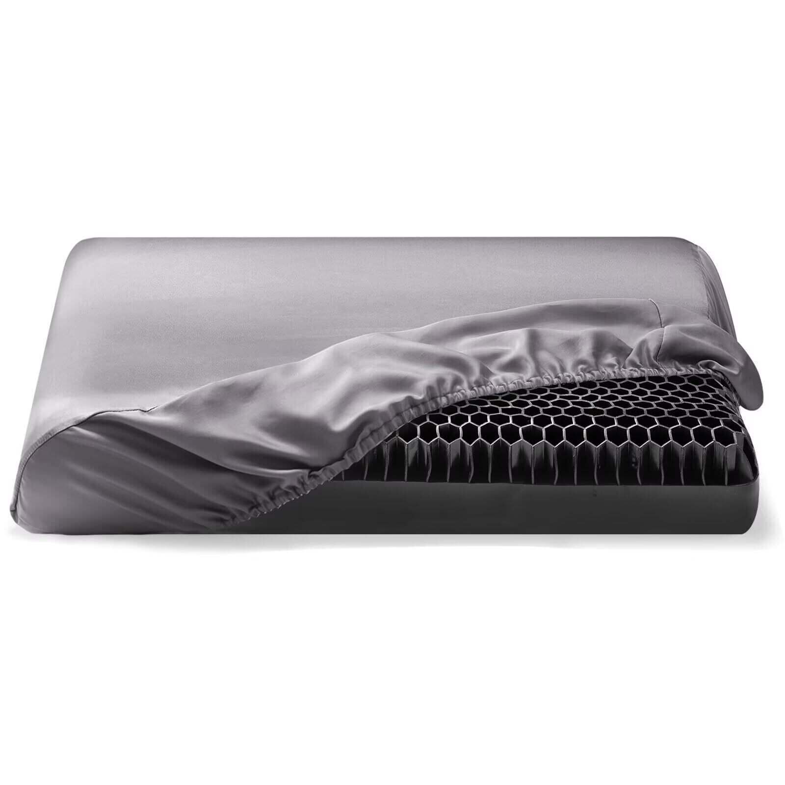 [THXSILK] シルク枕カバー 片面100%シルク 裏面テンセル付き 伸縮式デザイン 最高グレード6A OEKO認証済 洗濯機可 寝癖軽減 美髪・美肌 静電気防止 防ダニ・抗菌 贈り物 33~47*50~67*3~16cm枕 四季適応 一枚(43*63*15cm グレー)