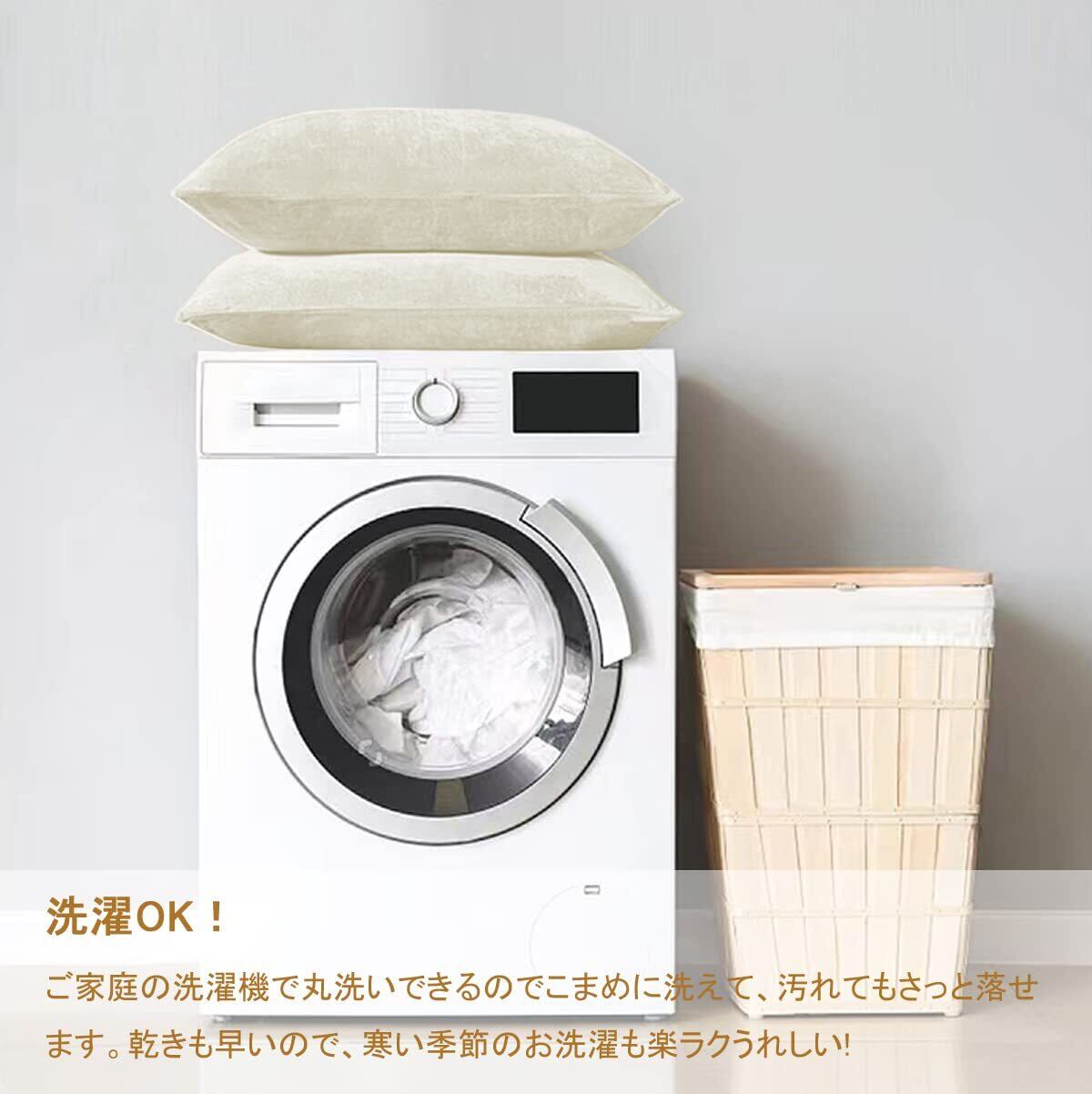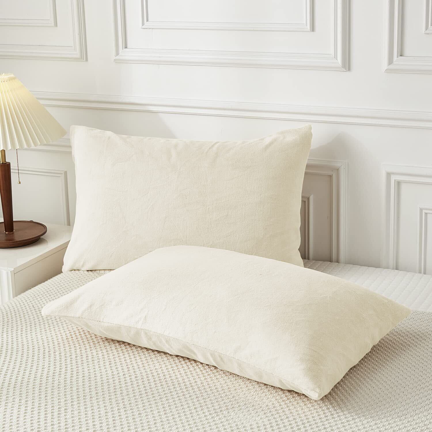 枕カバー 秋冬用 二枚セット あったか マイクロファイバー まくらカバー フランネル パイル地 ピローケース ふわふわ 柔らかく肌触り 暖かい 洗える 静電気防止加工 封筒式 アイボリー 43×63cm