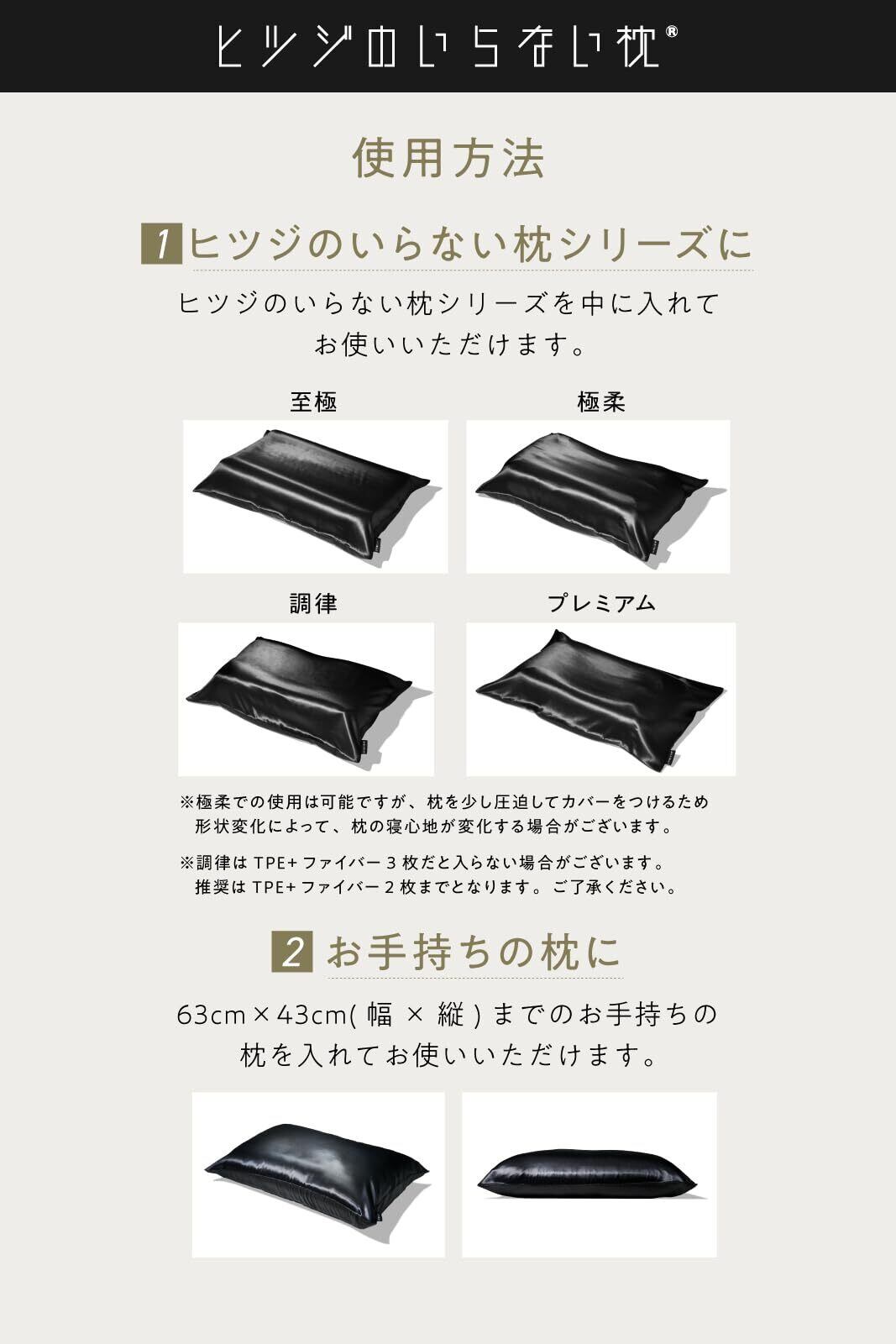 「ヒツジのいらないシルク枕カバー」(ブラック・対応サイズ) は、100%シルクを使用した高品質な枕カバーです。なめらかな手触りで、毎晩の快適な眠りをサポートします。