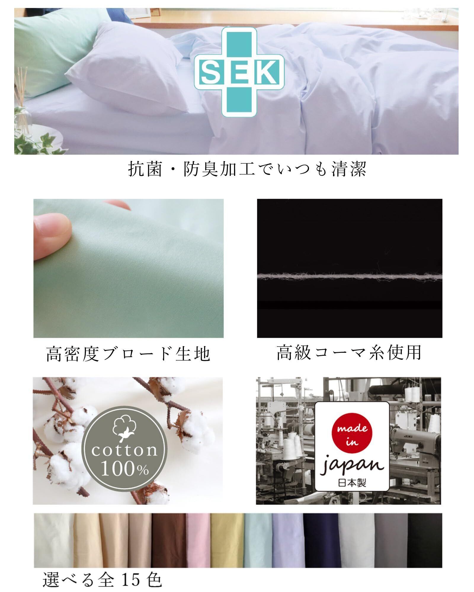 無駄な繊維を取り除いた200本ブロードの高級糸で織られているため、毛羽立ちが少なく爽やかな肌触りです。繊維メーカーが本当に使って欲しいと思う綿100%の日本製ベッドリネンです。