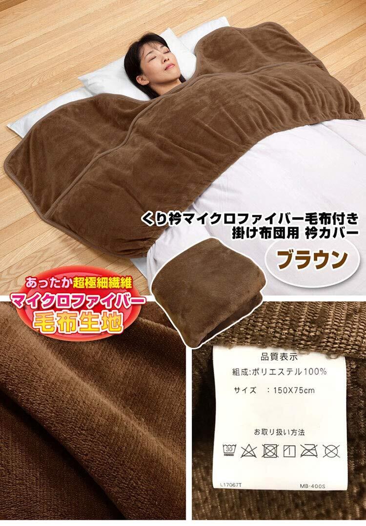 メーカー直販 掛け布団用 衿カバー シングル 150×75cm くり衿あったかマイクロファイバー毛布付き MB-400S-M1 (ブラウン)