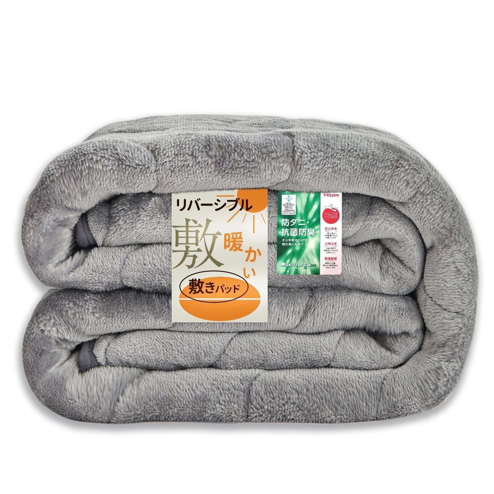 Matdeco 敷きパッド ダブル 冬 フランネル 洗える リバーシブル 春秋冬【TEIJIN マイティトップ中綿使用】シーツ あったか ベッドシーツ 吸湿 発熱 蓄熱わた使用 しきぱっと 静電気防止加工 敷パッド あったか 冬 寒さ対策 防ダニ 抗菌防臭 140×200cm グレー