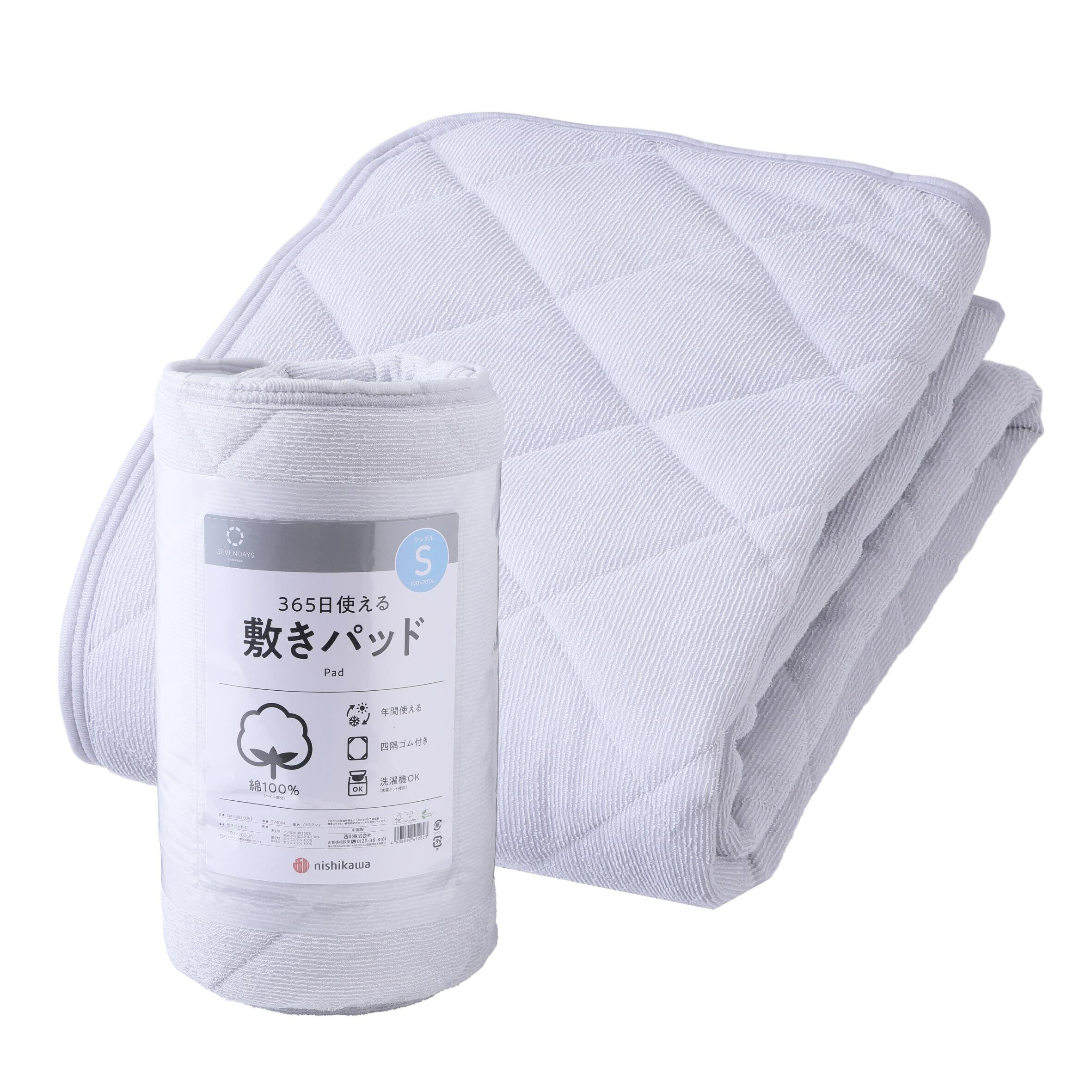 nishikawa【西川】 SEVENDAYS パイル地 敷きパッド シングル 洗える 綿100% 365日使える 1年中使える タオル地 グレーSV4064 CM04020053