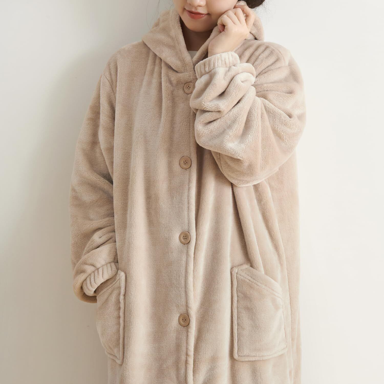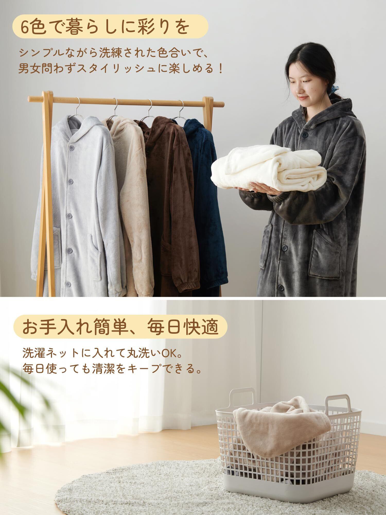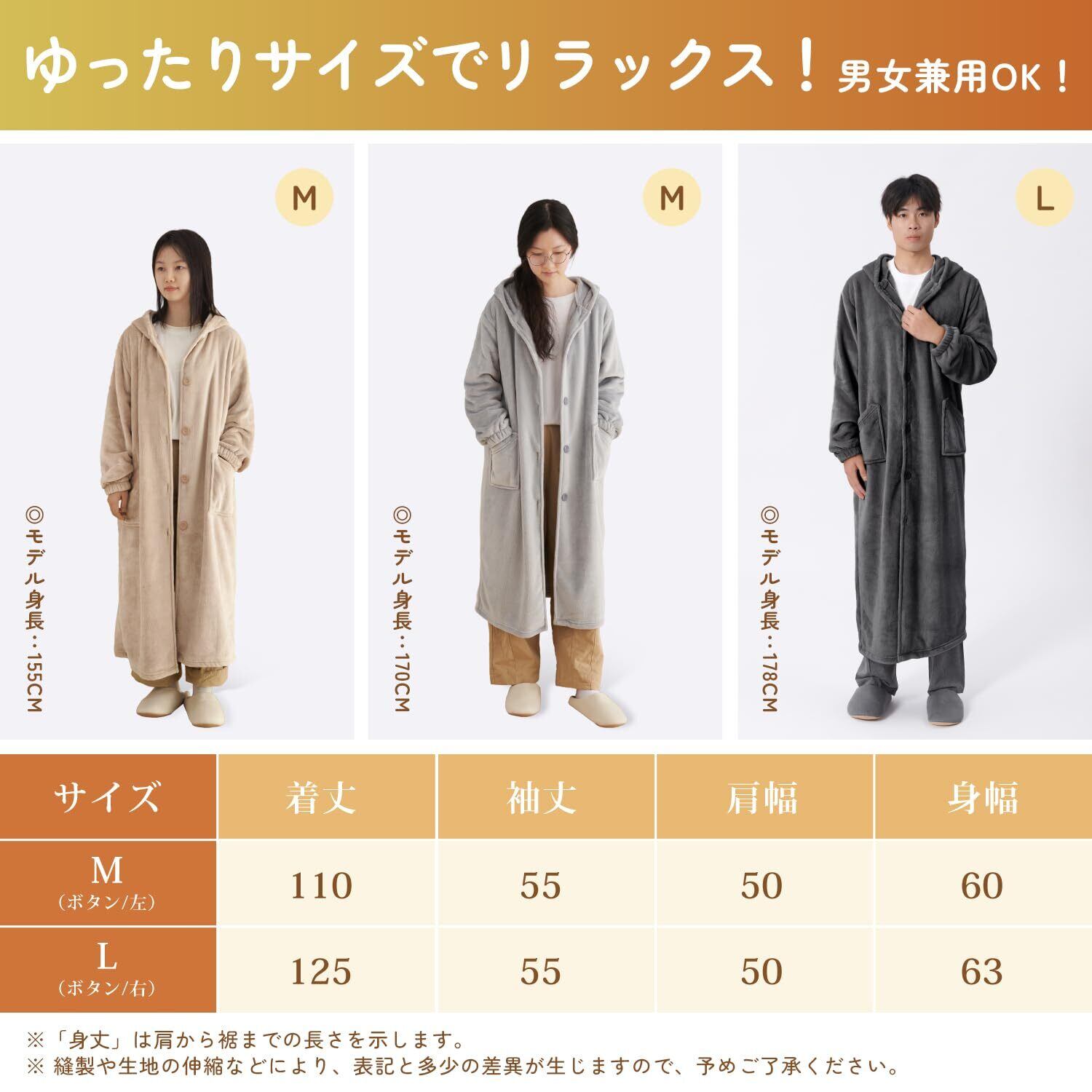 [WAYSHOME] 着る毛布 男女兼用 Mサイズ ルームウェア 暖かい 着るブランケット かいまき 部屋着 パジャマ ガウン フード付き ボタン付き ポケット付き リブ袖 フランネル ふわふわ 吸湿発熱 静電気防止 春用 秋冬 洗える レディース メンズ (M-着丈110cm,ベージュ)