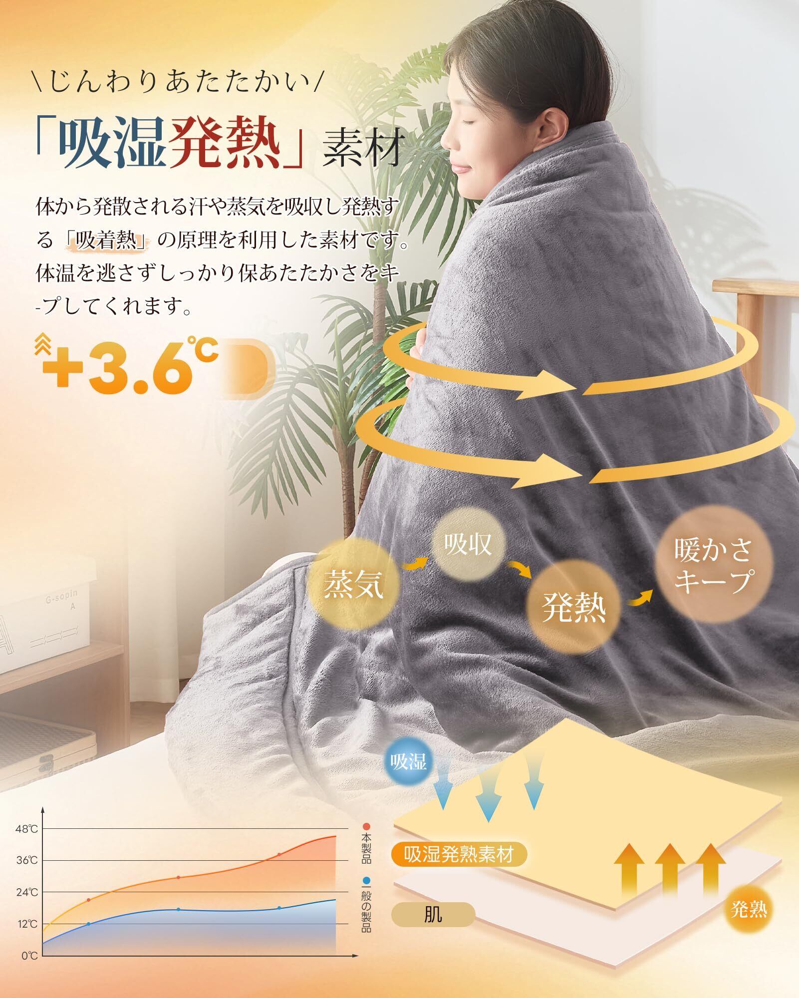 【柔らかくて通気性もよい】ブランケットの両面は超極細繊維のフランネル生地を採用しており、ミルクのように滑らかで柔らかな肌触りと高級感のある光沢を兼ね備えます。中層は吸湿発熱機能の中綿を詰めるので、体から発散する汗などの湿気を吸収しやすく、素速く乾きます。通気性がアップするので、さらさらとした睡眠環境を提供することができます。