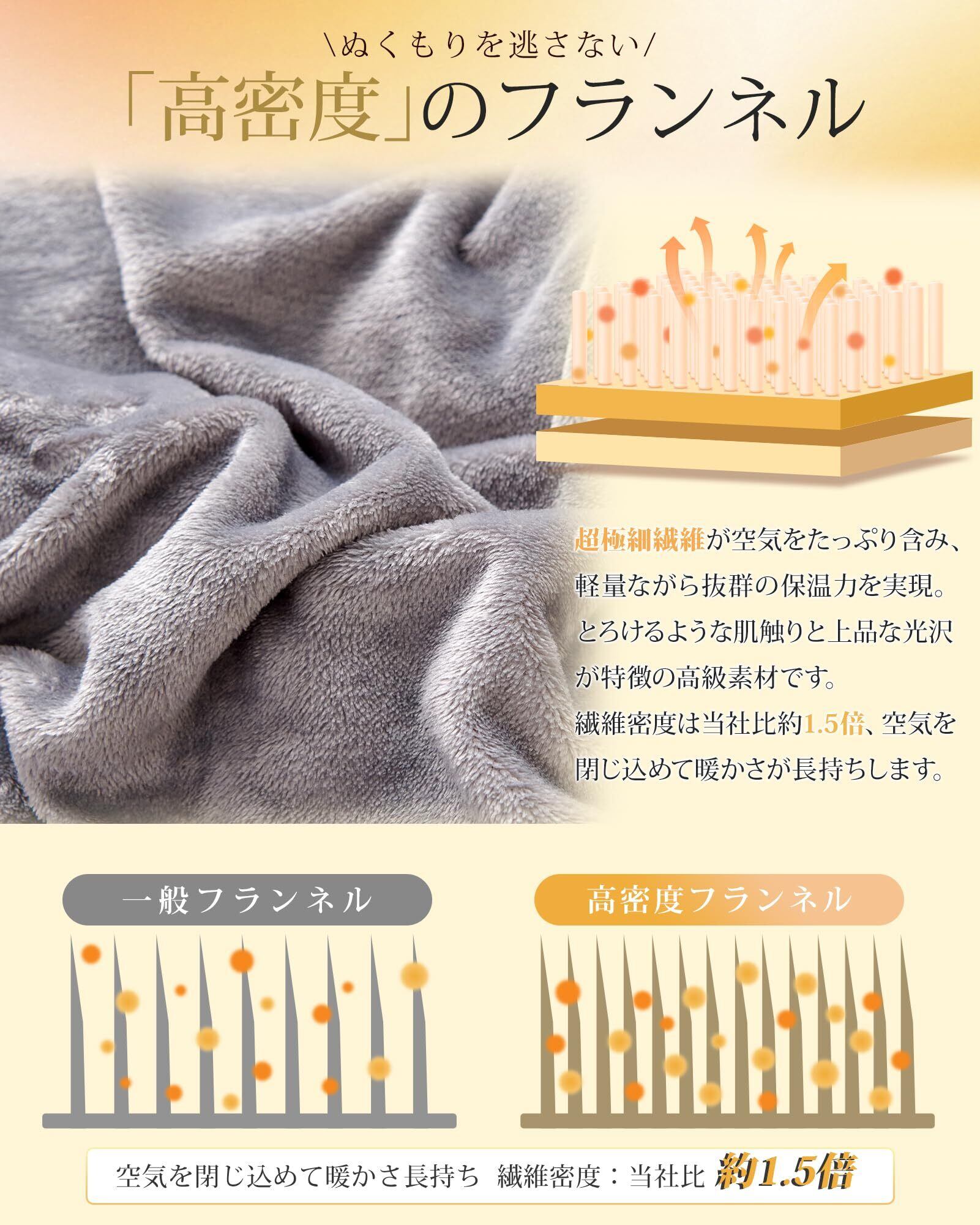極厚のフランネル生地を使用しており、ふわふわの肌触りが魅力。包み込まれるような感触で、寒い冬でもリラックスできる状態を提供します。寒い夜にこそ、心地よさを実感していただけます。