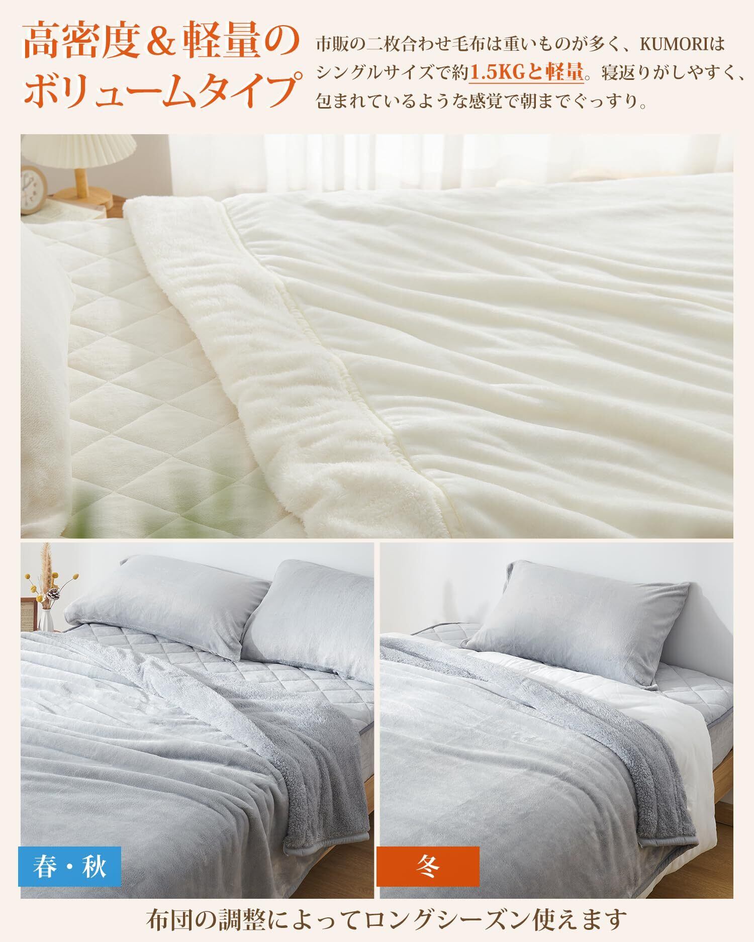 \【◆クモリ(Kumori) 2枚合わせ 厚手毛布 シングル|冬の寒さを優しく包み込むあったかブランケット!】/