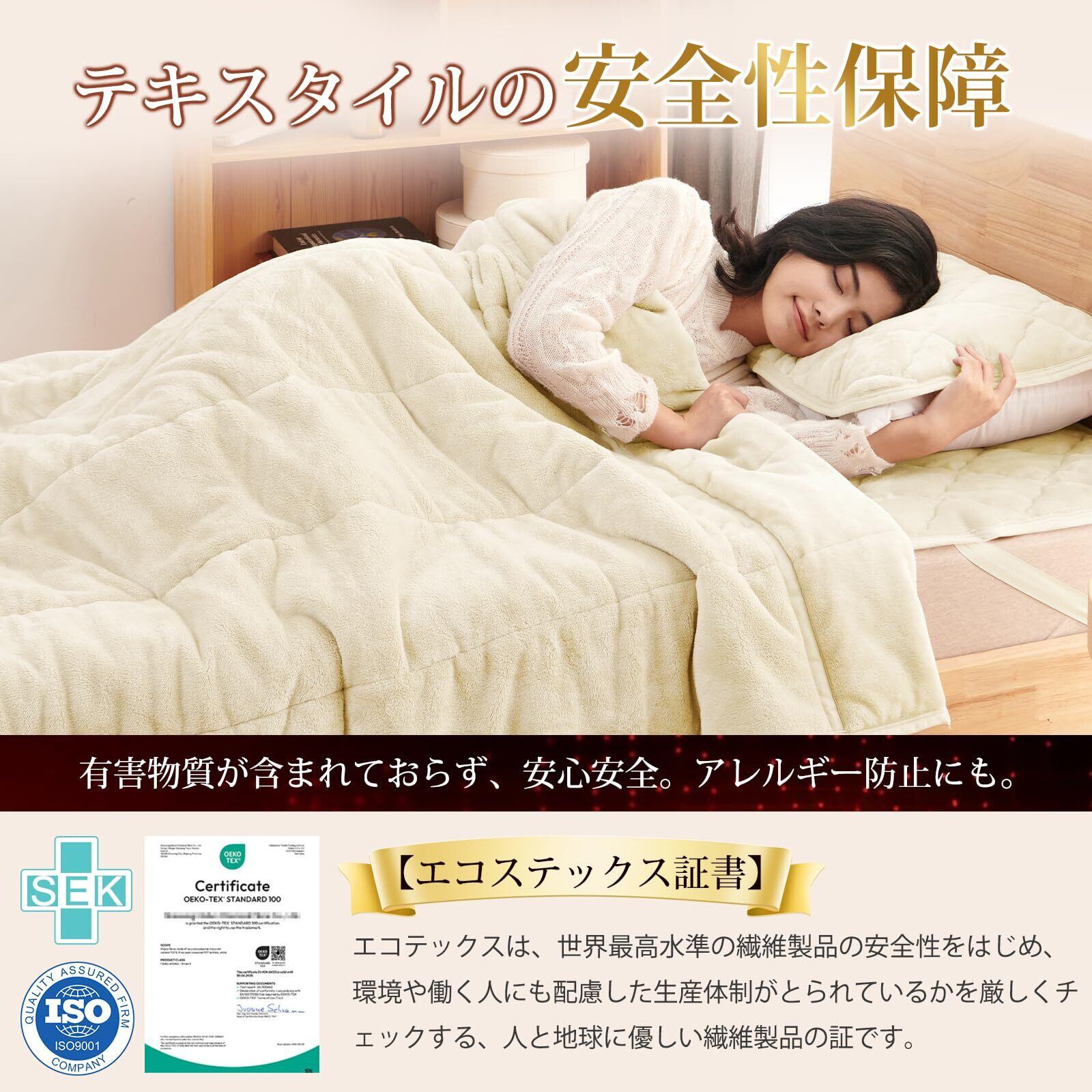【ぬくもり続くマイクロファイバー】本店の毛布は高密度フランネルマイクロファイバー生地を採用。キメの細かい毛並みで、やわらかい肌触りのフランネル生地は触っているだけでなんだかほっこり暖かい気分にさせてくれます。静電気の発生を抑制する加工を施しており、冬場のストレスを大幅に軽減します。直接肌に触れるものだからお子さまにも安心して使える安全品質にこだわりました。