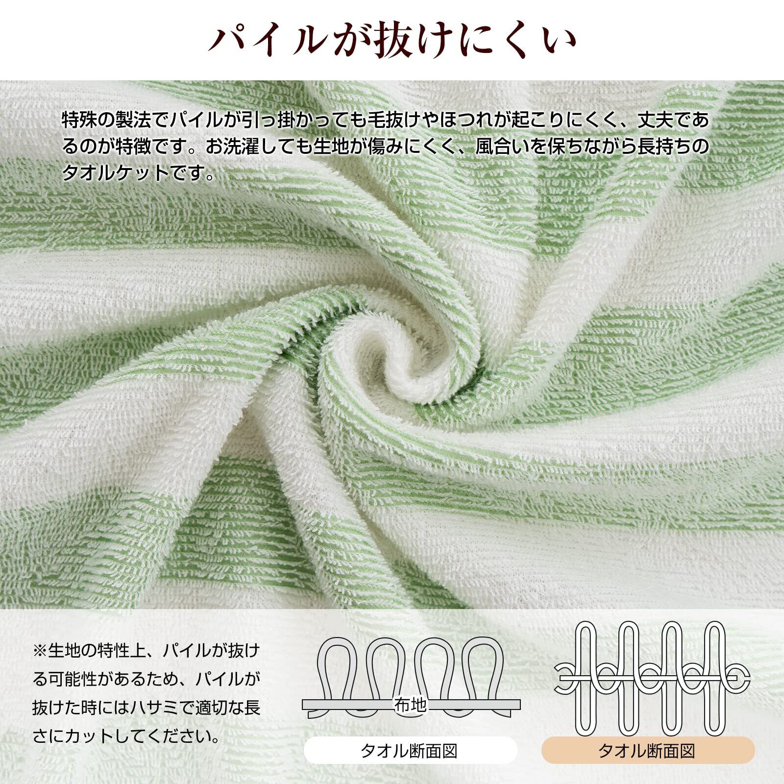 Sねむりのサンショップ タオルケット シングル 綿100% タオル地 肌掛け オールシーズン 吸汗 吸湿 通気 柔らか 肌触り ふわふわ 丸洗い 爽やか 抗菌防臭 モコモコ パイルが抜けにくい マイヤー織り サラサラ ボリューム リバシーブル 軽量 ベタつきにくい ブランケット 夏 ふんわり ムレにくい グリーン 140*200cm