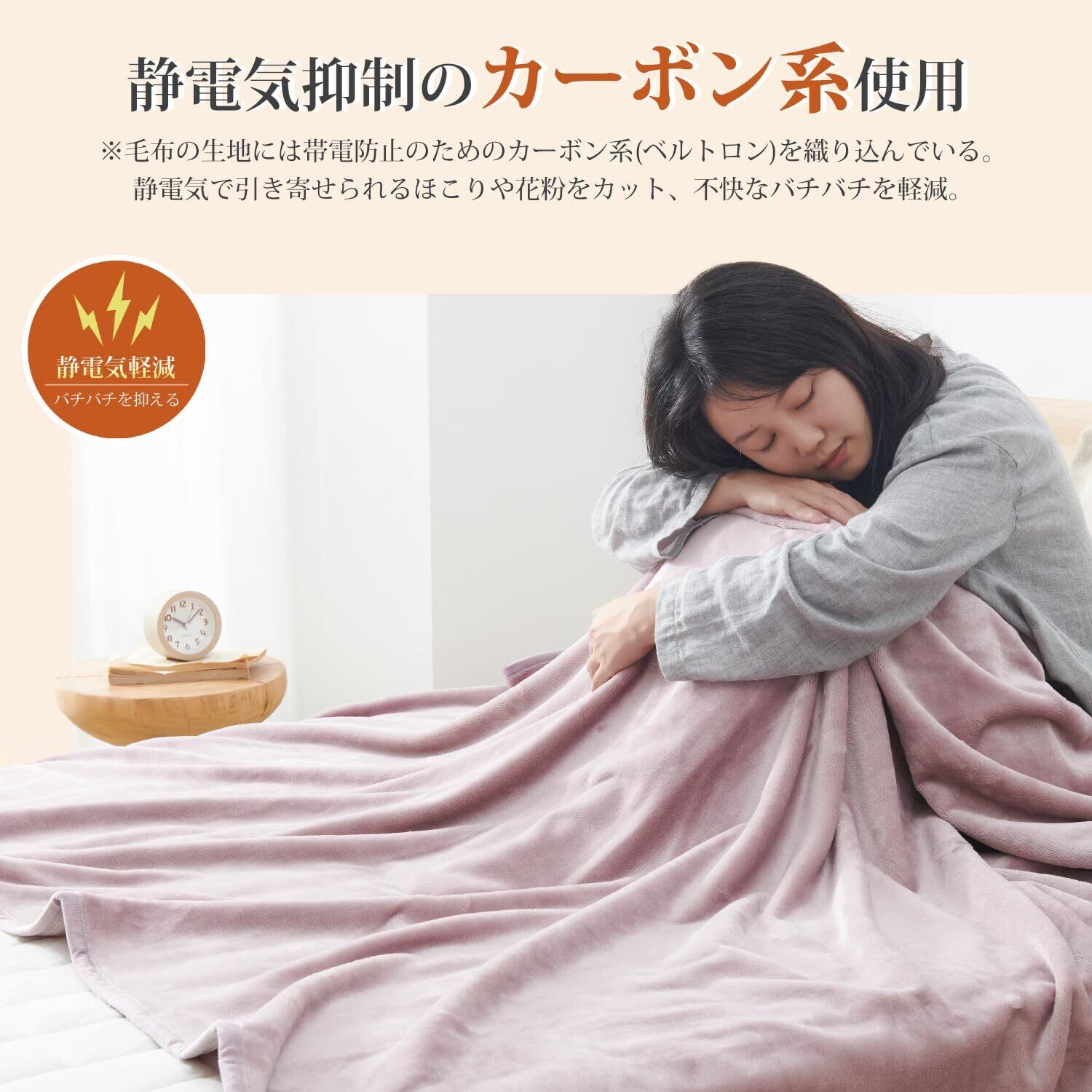 <ふんわり、なめらか>:毛布は高密度フランネルマイクロファイバー生地を採用しています。キメ細やかな繊維が、ふんわりで柔らかな肌触りを与え、体を優しく包み込みます。