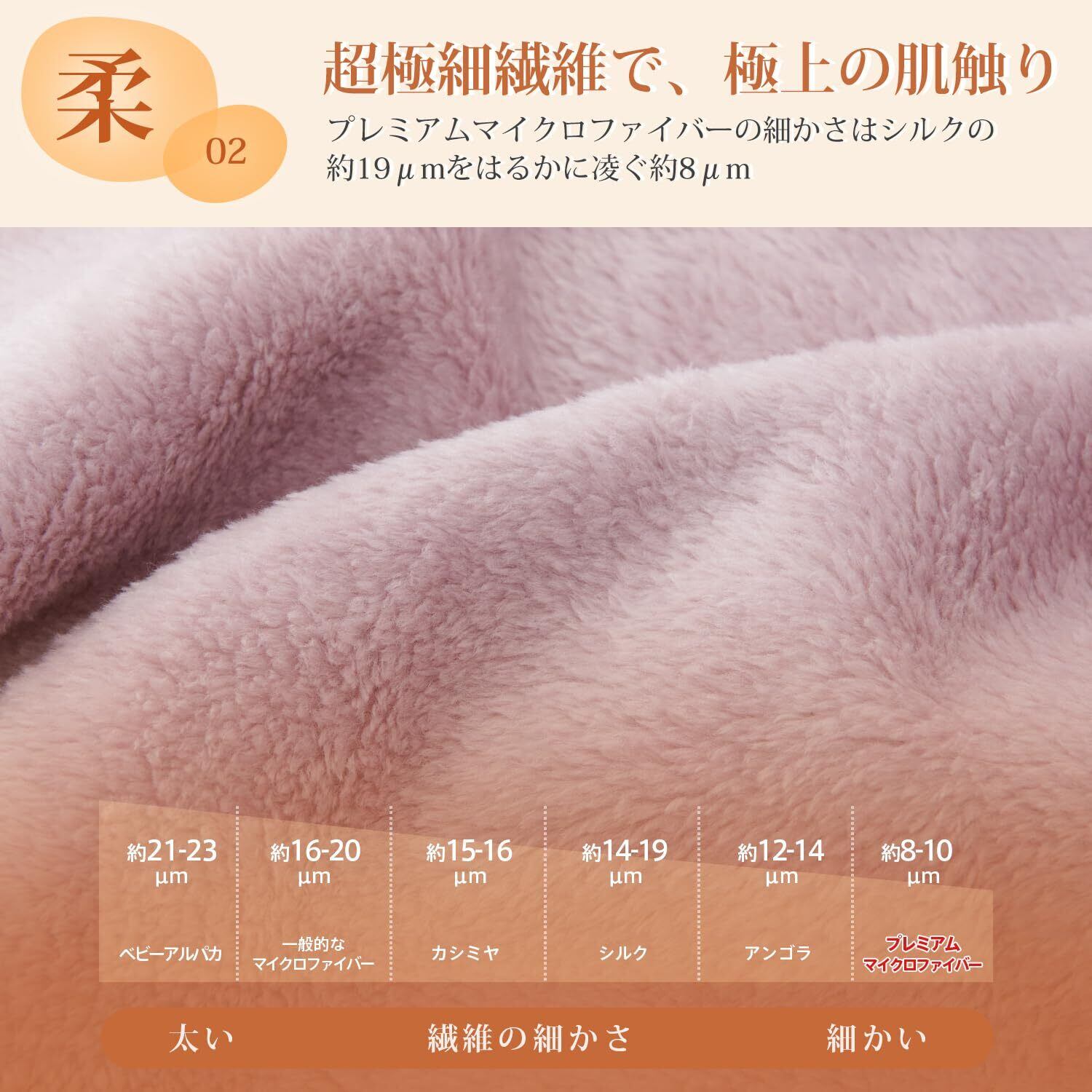 ・従来のマイクロファイバー毛布に比べて、極細繊維を使用しているため、肌触りは格別です。撫でた時の毛並みは美しい。その違いを肌で実感頂けます。