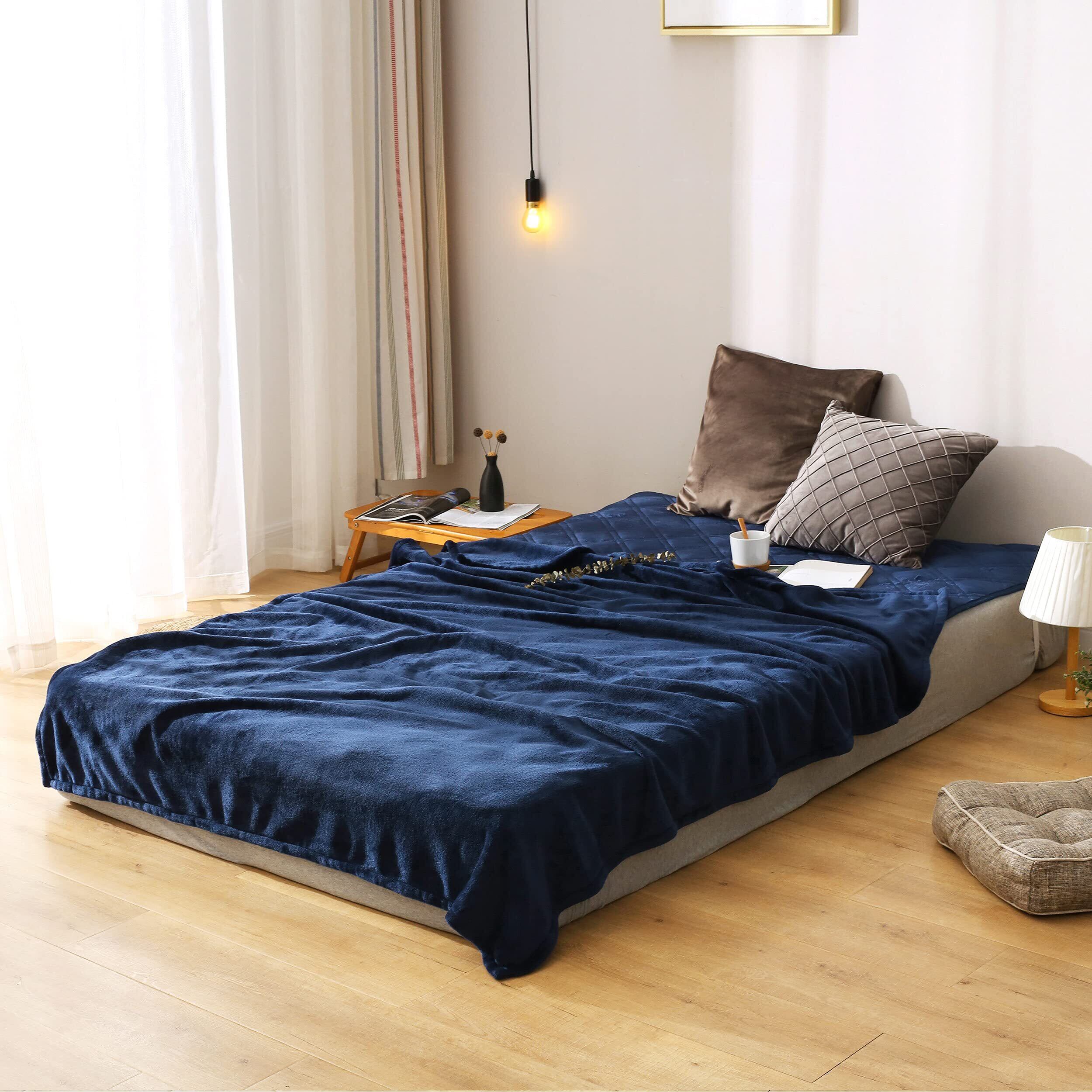 あったか毛布 軽量 もうふ ブランケット 冷房対策 春夏用 オールシーズン 洗える 暖かい ふんわり なめらか 吸湿発熱 マイクロファイバー 柔らかい 静電気防止 シングル ネイビー