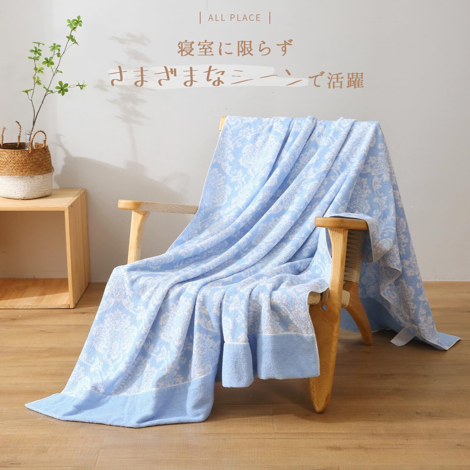 SE タオルケット シングル 夏用 ブランケット 綿100% おしゃれ 柔らかい ふんわり 吸湿速乾 抗菌防臭 洗える オールシーズン快適 140cmx200cm (からくさ·ブルー) 「SE Softexly」