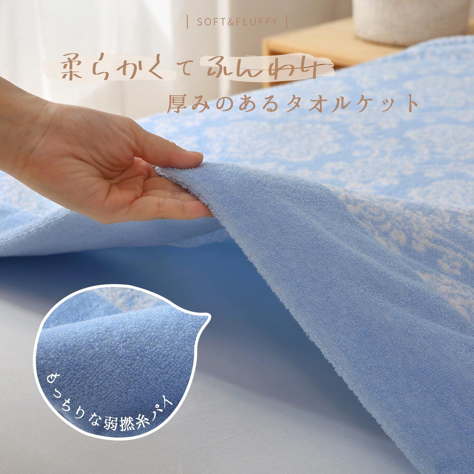 【いつもサラッと快適】吸水性・吸湿性に優れたタオルケットは、汗や湿気を素早くしっかりと吸収してくれます。梅雨のジメジメでも夏のムシムシでも、サラッとしてベタつきにくく、朝までぐっすり眠り、寝起きも爽快です。ほどよい厚みで暑いとは感じてません、癒されるふわっとした肌触りが気持ちいいです。