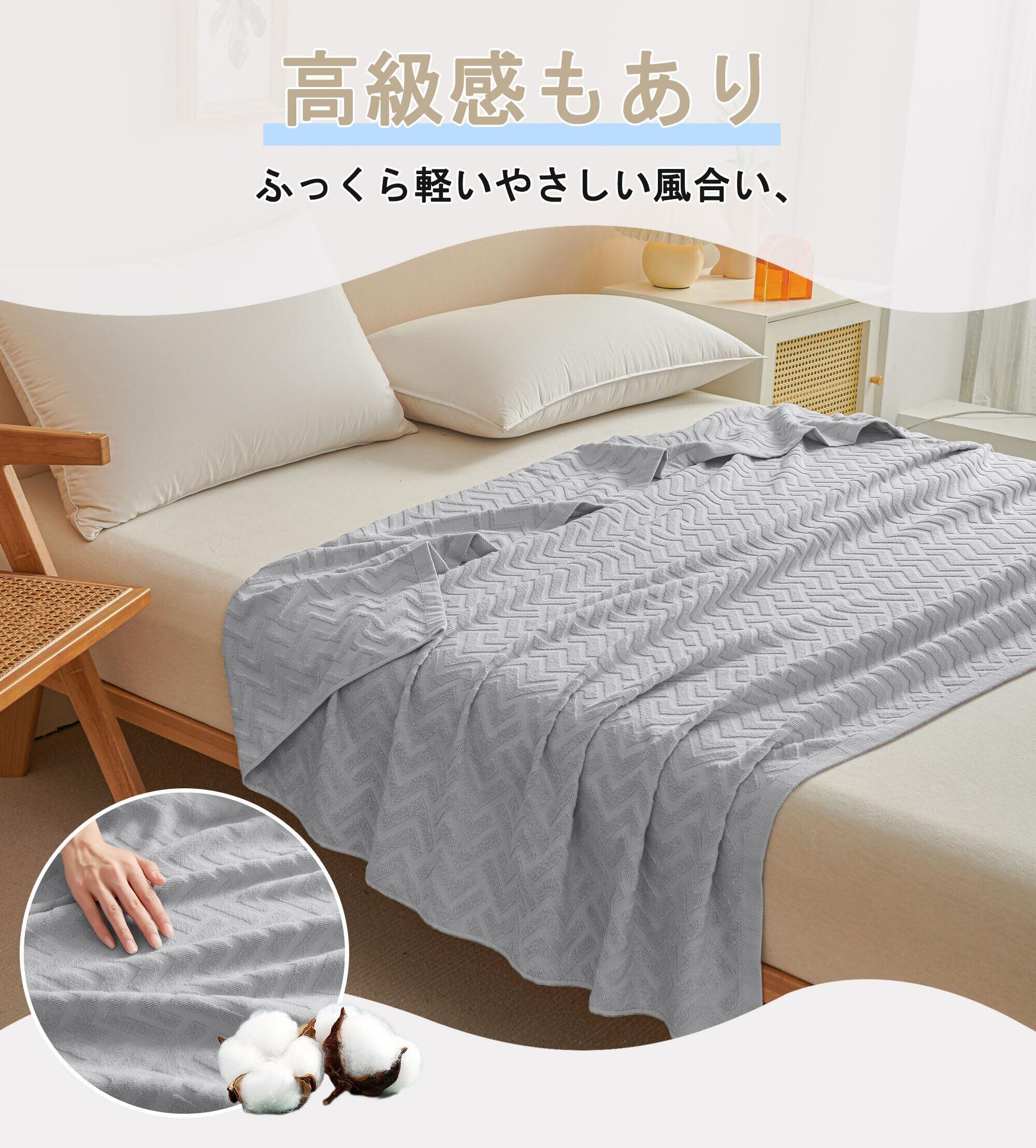 AYO タオルケット シングル ブランケット 綿100% コットン おしゃれ エアーケット キルトケット 抗菌 肌掛け 軽量 柔らかく肌触り 毛玉が出ない 毛布 オールシーズン/夏用 ソファー用 丸洗いOK 吸湿速乾 汗やムレによる不快感を抑えて 母の日/父の日/誕生日のプレゼント(ライトグレー 140×190cm)