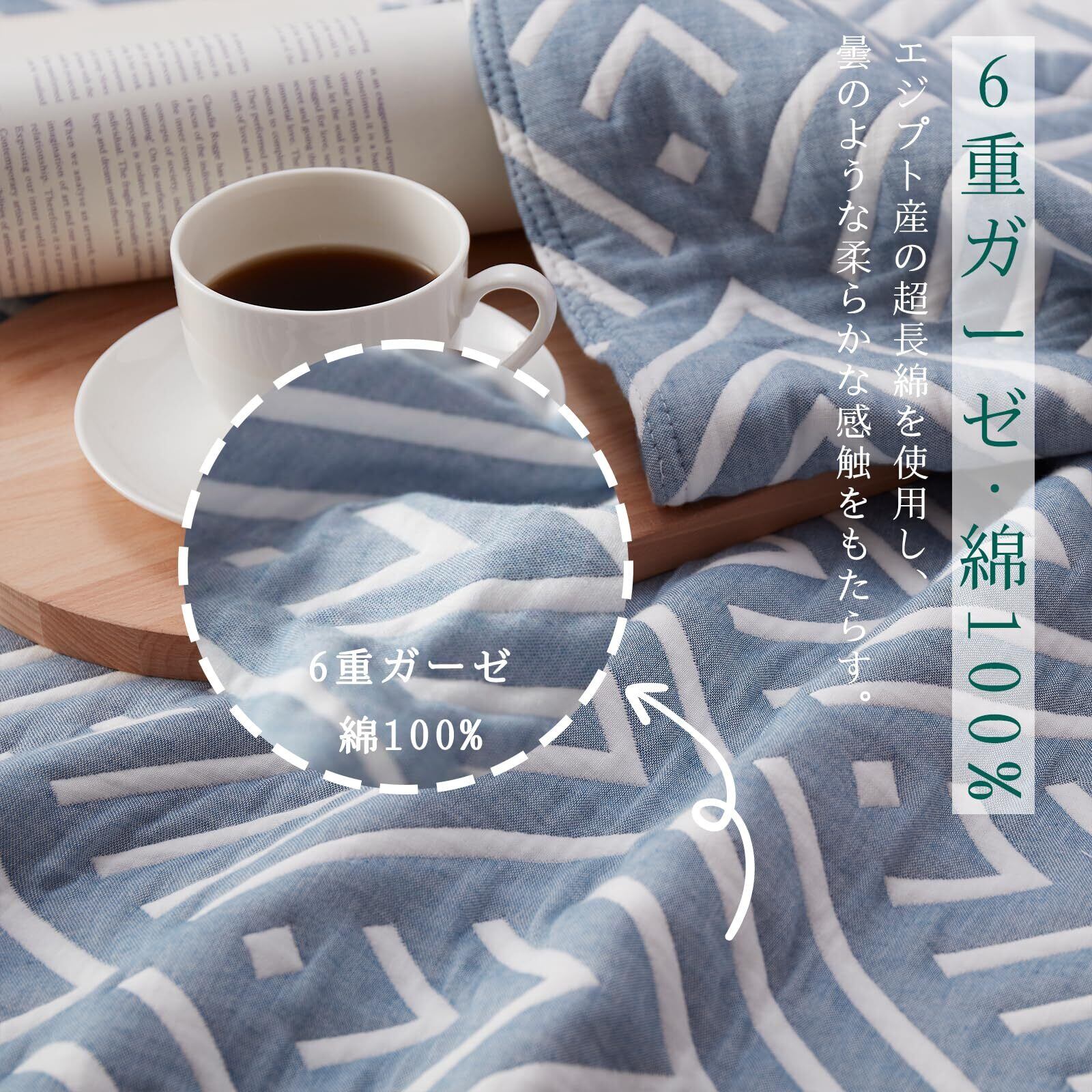 この6重ガーゼケットは、優れた吸湿性と通気性を備えていますので、暑い夏でも快適にお使いいただけます。軽量で蒸れることもなく、心地よく過ごせるアイテムです。