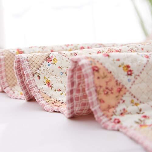 ✿ 清楚で可愛らしい小花柄と同色系のチェック柄を組み合わせることにより、かわいい雰囲気が生み出し、部屋も明るくなります。綿が片寄りしないため、肌さわりいい生地にキルティングを施しています。フチ部分は波型の仕上げ、細かいところまでこだわって高級感演出。