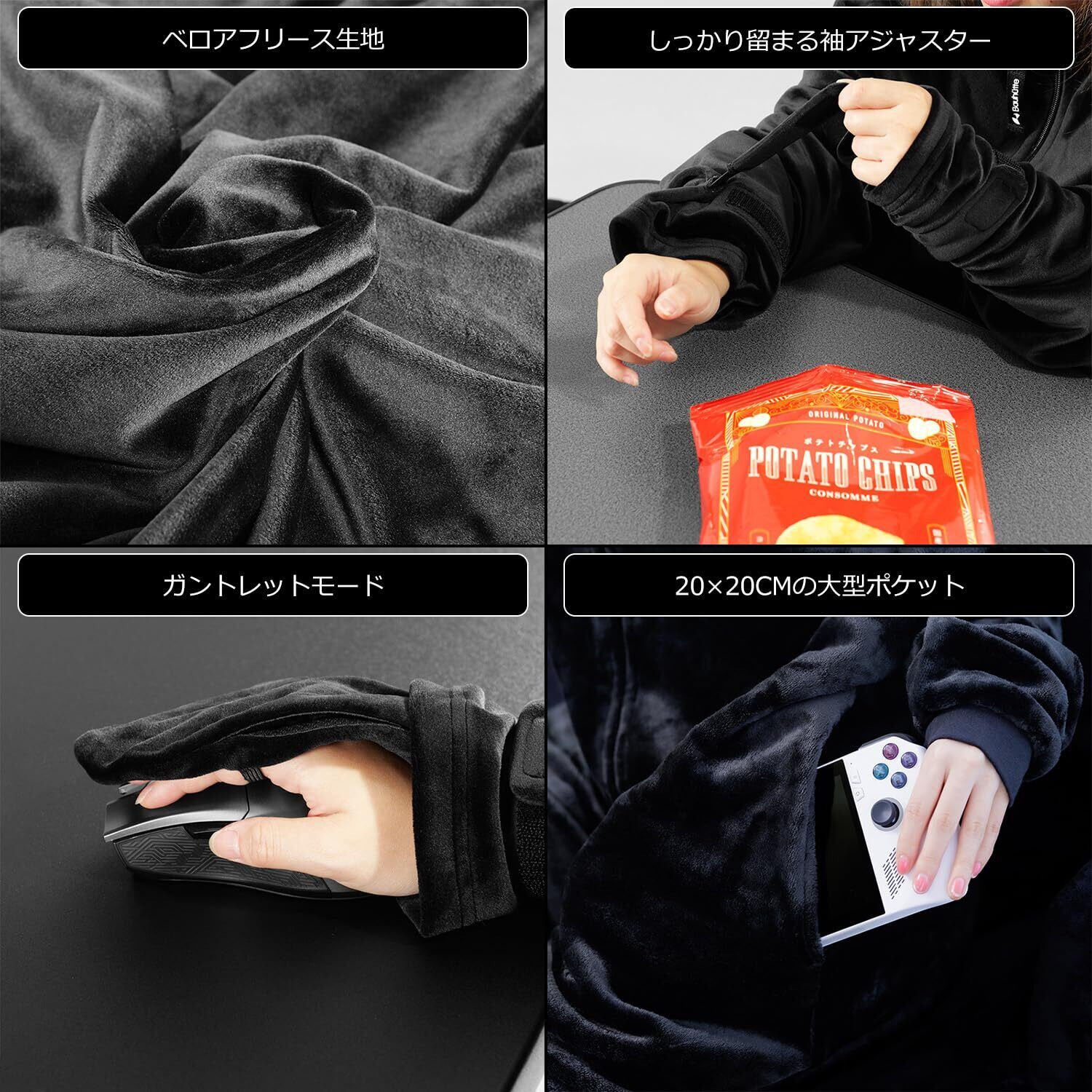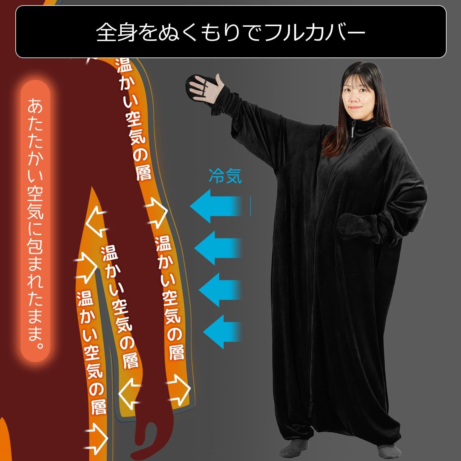 [バウヒュッテ] 着る毛布 ゲーミング ルームウェア「ダメ着 ストレッチ」 ブラック フリーサイズ