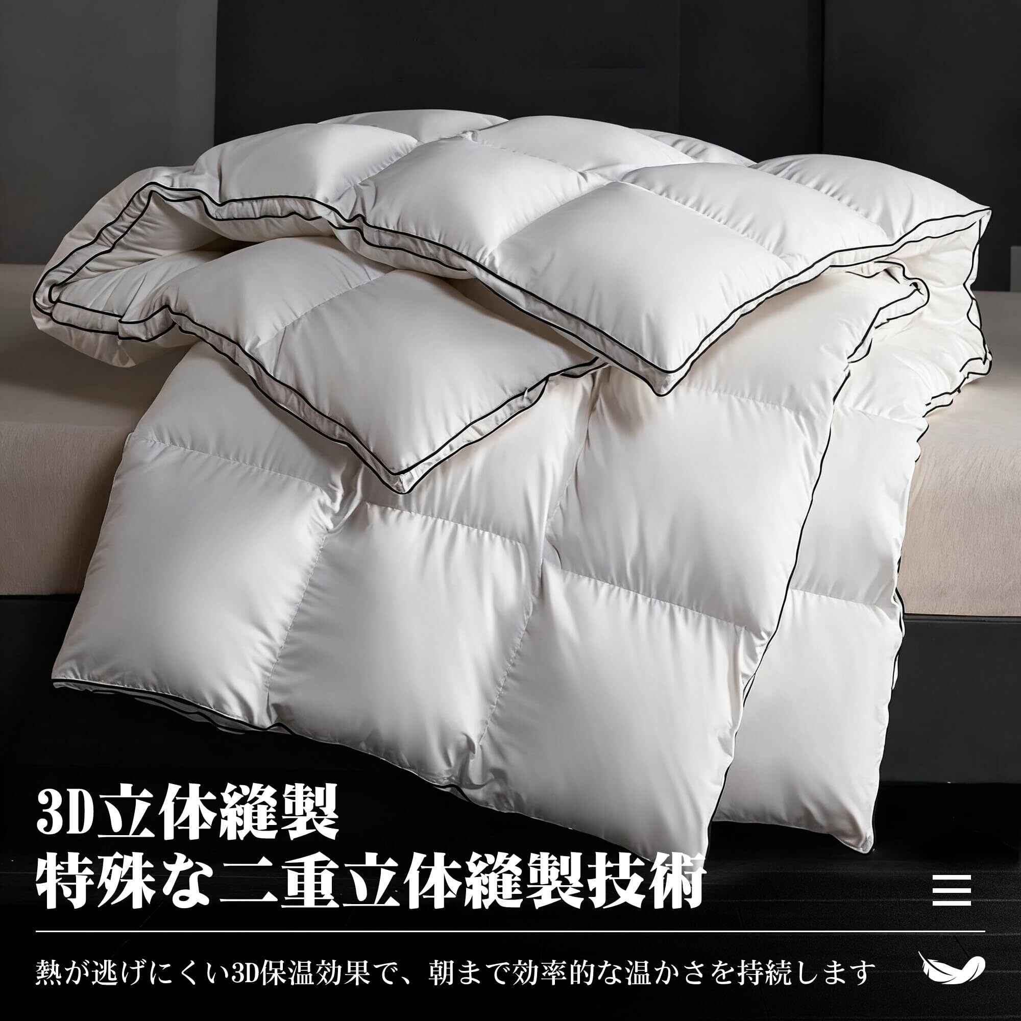 【3D立体縫製で温かさを持続】 特殊な二重立体縫製技術で羽毛を固定。空気の層を効果的に形成し、熱損失を防ぐことで、一晩中安定した保温効果を持続させます。
