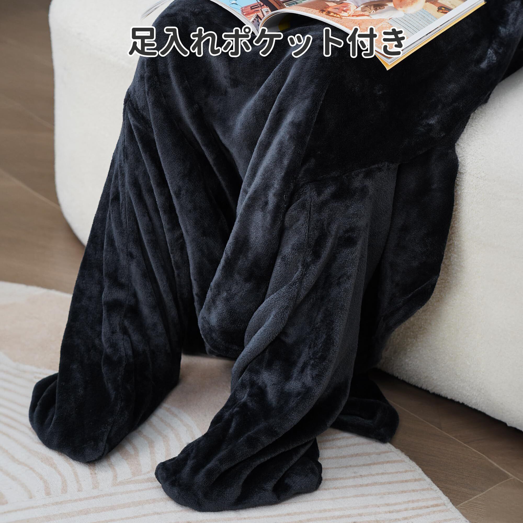 [Winthome] 着る毛布 足ポケット・袖付き毛布 メンズ レディース 足 冷え対策 大きいサイズ ソファー毛布 全身カバー かい巻き お昼寝ブランケット 防寒 保温 背中マジックテープ止め