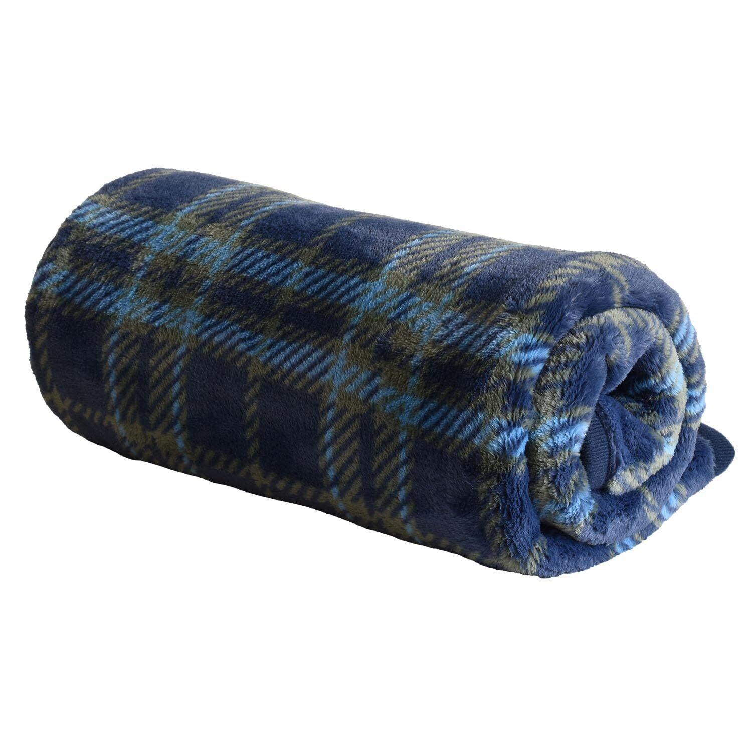 トランパラン ミルクマイヤー ひざ掛け ブランケット 洗える 小さめ スナップボタン付き 約80×100cm(チェックネイビー)