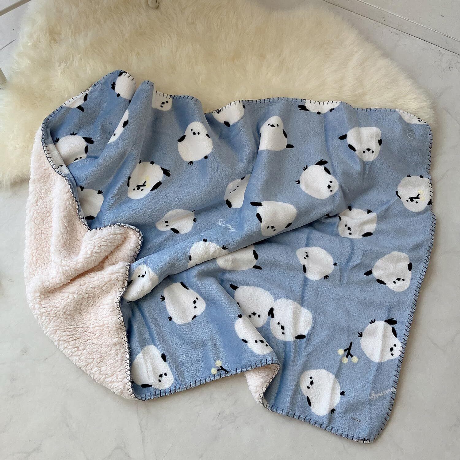 \【◆ASKNOWASPLUS ZY8286 ふわふわアニマルひざ掛け |暖かくて可愛いブルーシマエナガデザイン!】/
