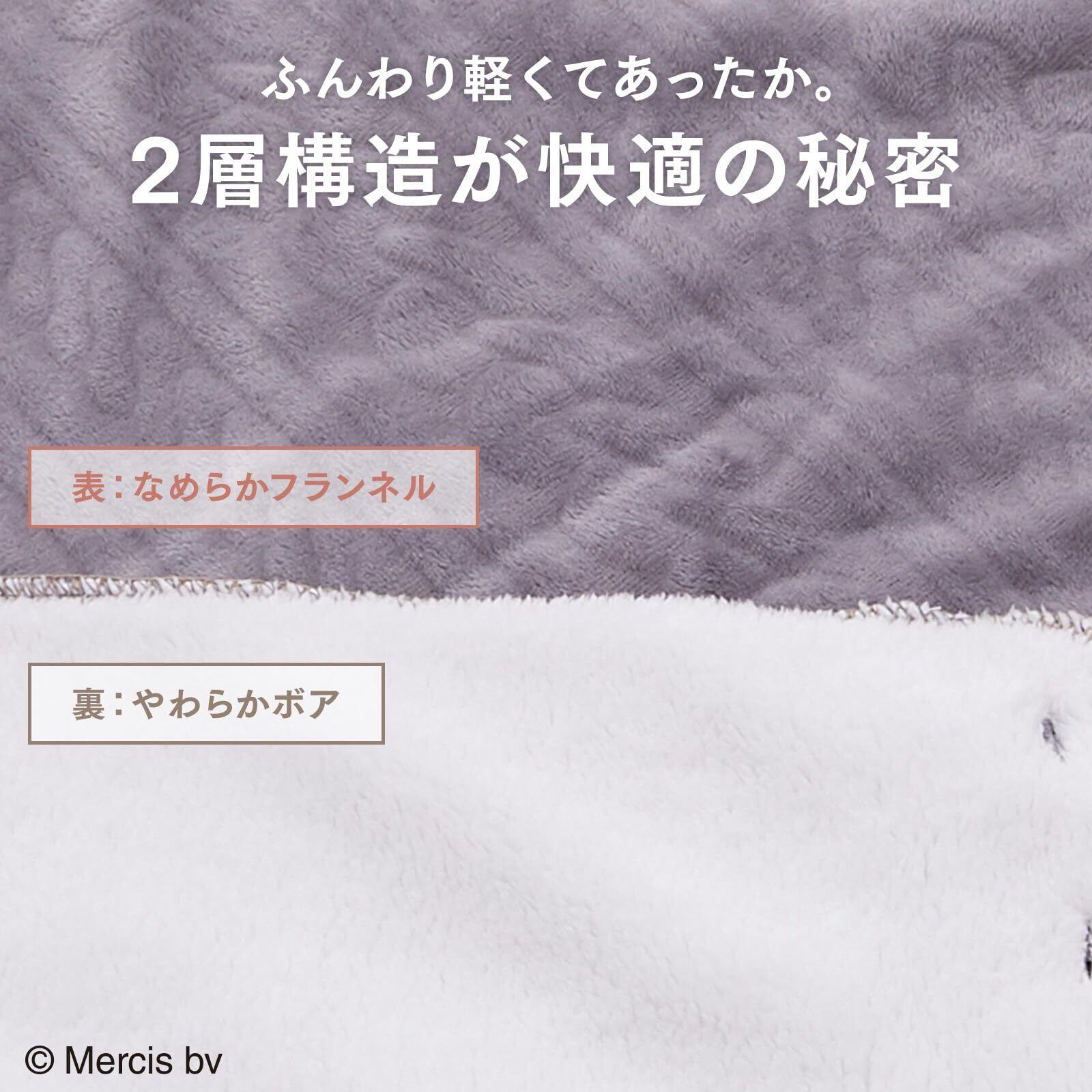 【軽くて暖かい2層構造のふわもこ素材】 表面はなめらかなフランネル、裏面はふんわりとしたボア素材を使用した2枚仕立て。空気を含むような軽さとあたたかさで、寒い季節にぴったりの仕様です。