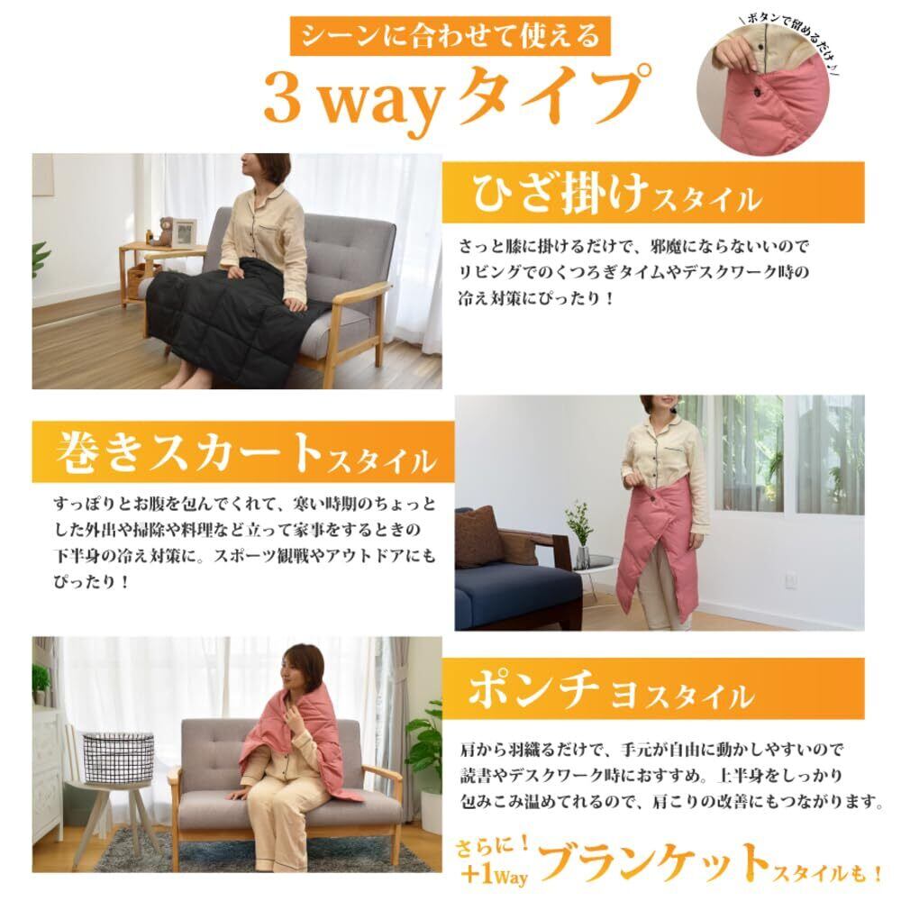 [ねむりの部屋] ダウンケット 羽毛 マルチ ウォッシャブル 肩掛け ポンチョ 膝掛け 巻きスカート アウトドア キャンプ 防寒 洗える 冬用 ポンチョ マルチケット QK4927 (ブラック)