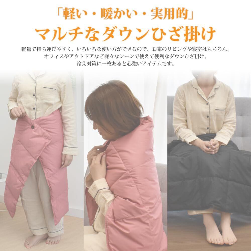 【マルチに使える】ダウンケットとして、ひざ掛け・肩掛け・ブランケット・ポンチョ・巻きスカートなど、多彩な使い方ができる羽毛入りマルチケット。 【暖かく軽量】羽毛ダウンを使用し、ふんわり軽く、寒い季節の防寒対策に最適。アウトドアやキャンプでも大活躍。